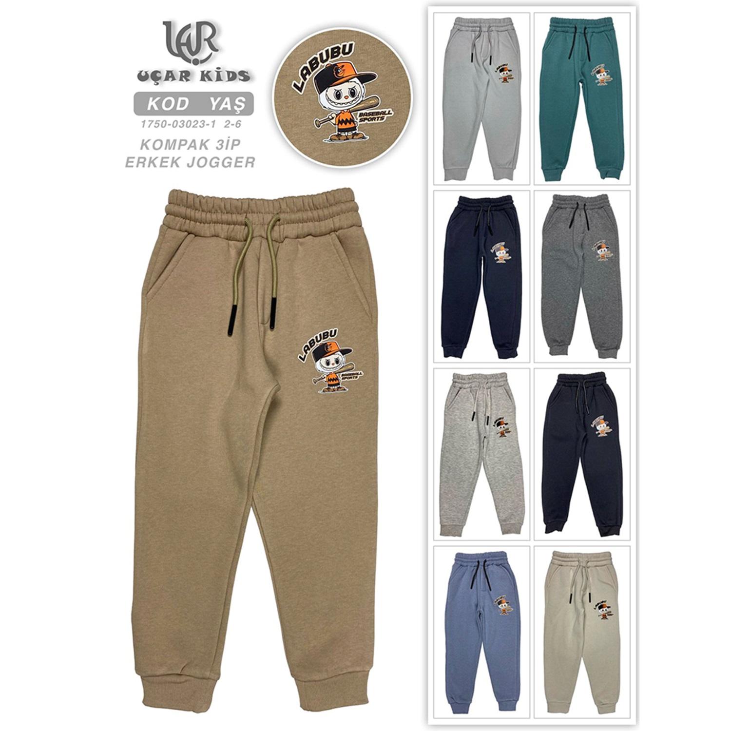 Uçar 3023-1 Erkek Çocuk 3 İp Labubu Baskılı Yan Cepli Paça Ribana Eşofman Alt 2-6 Yaş