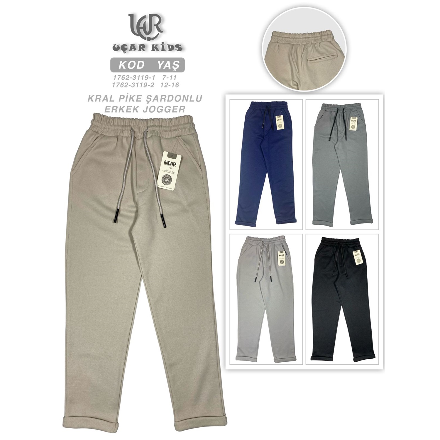 Uçar 3119-2 Erkek Çocuk Şardonlu Kral Pike Arka Cepli Jager Duble Paça Eşofman Alt 12-16 Yaş