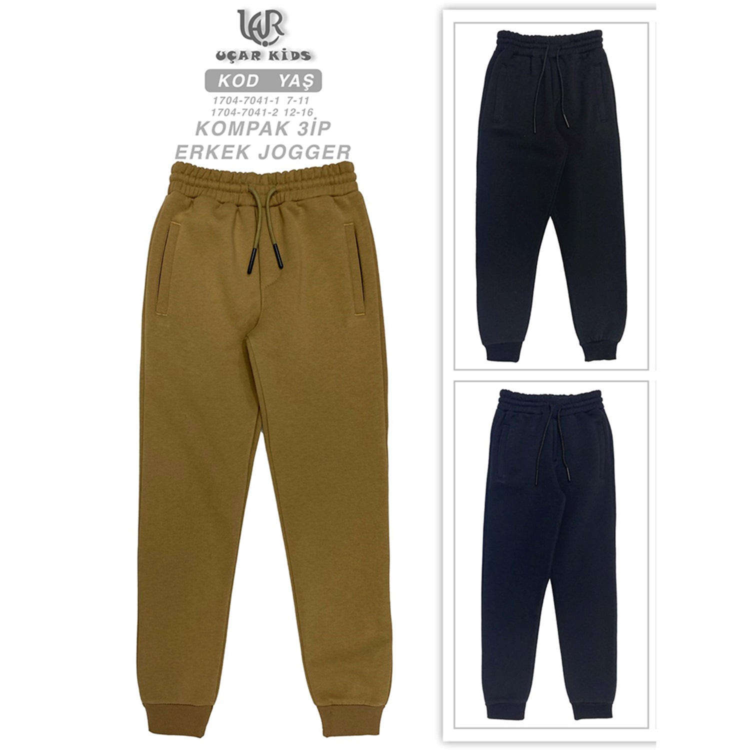 Uçar 7041-2 Erkek Çocuk 3 İp Fermuarlı Flato Ribana Paça Eşofman Alt 12-16 Yaş
