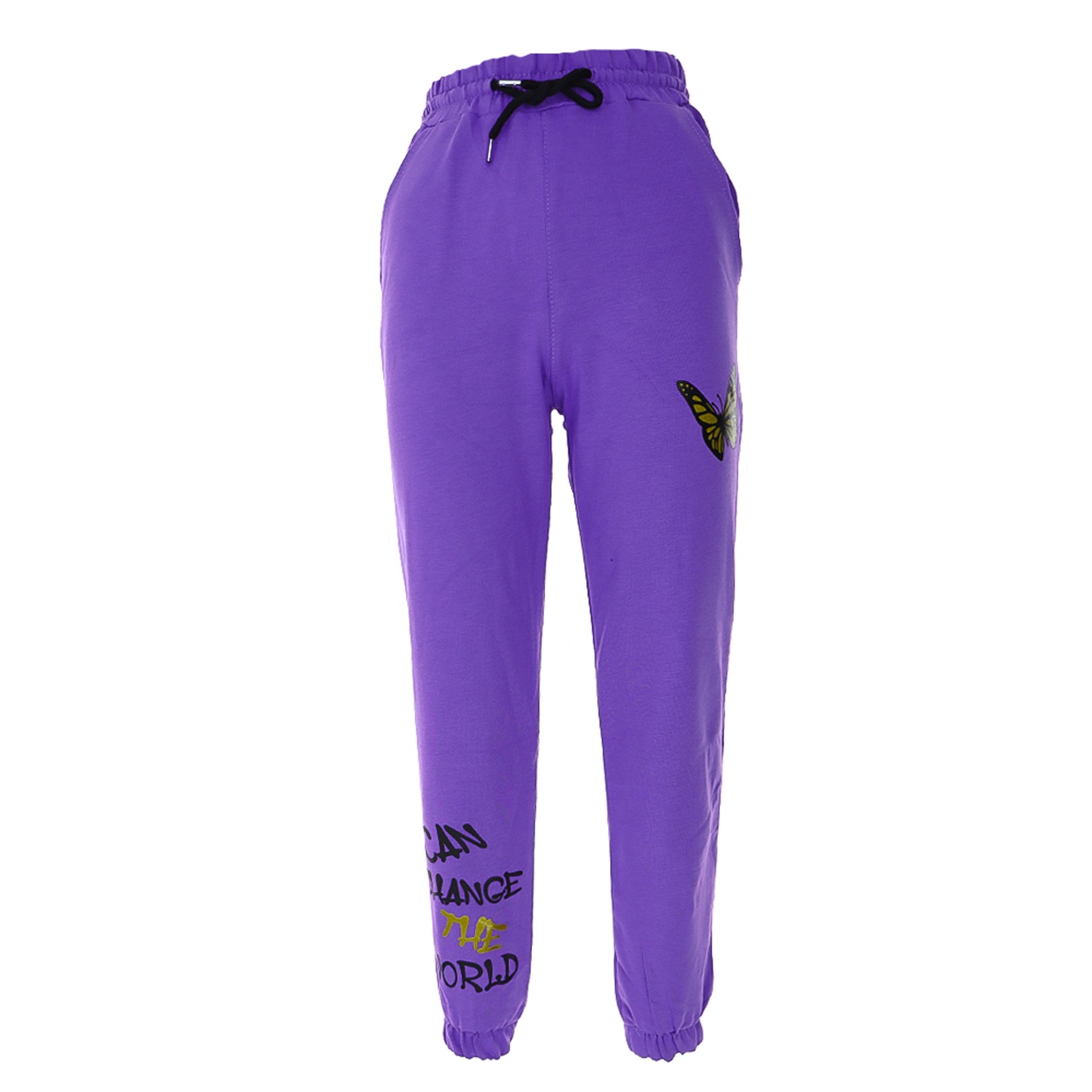 Uçar 719 1110-2 Kız Çocuk Kelebek Baskılı Kompak Penye Yan Cepli Eşofman Alt 9-12 Yaş