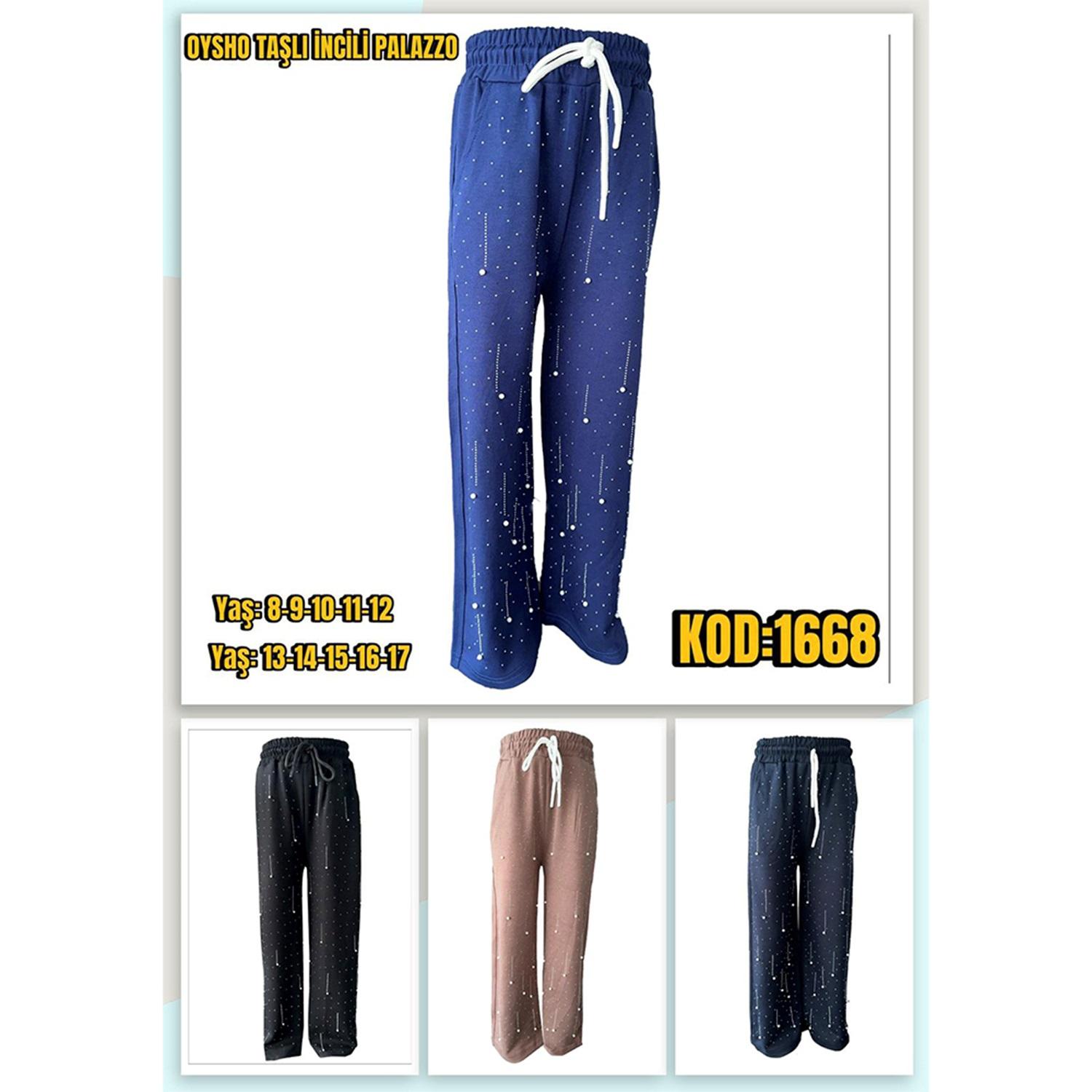 Yılmazcan 1668-1 Kız Çocuk Oysho Duble Face İnci Taşlı Palazzo Eşofman Alt 8-12 Yaş