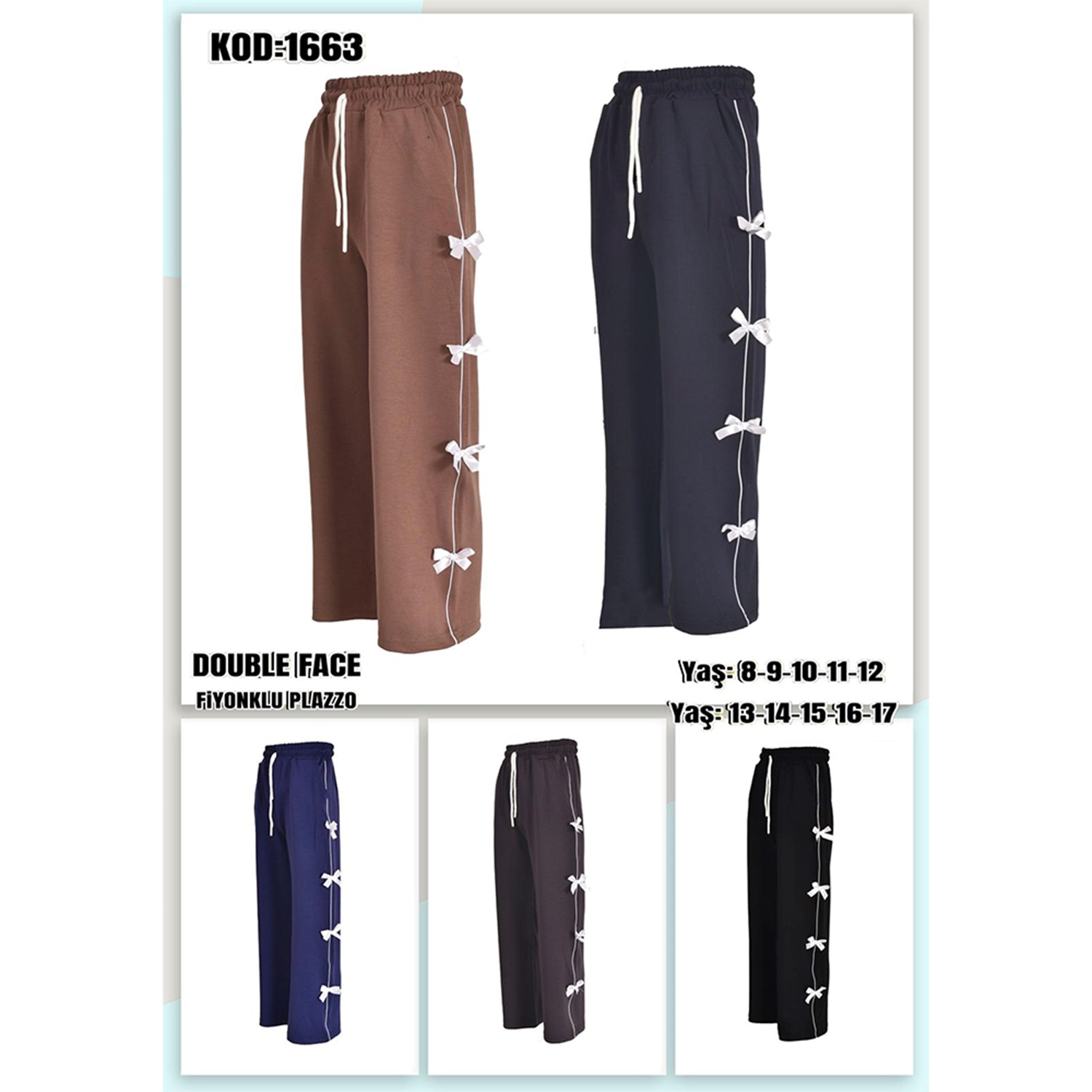 Yılmazcan 1682-2 Kız Çocuk Oysho 2 Biyeli Orta Kurdelalı Palazzo Eşofman Alt 13-17 Yaş
