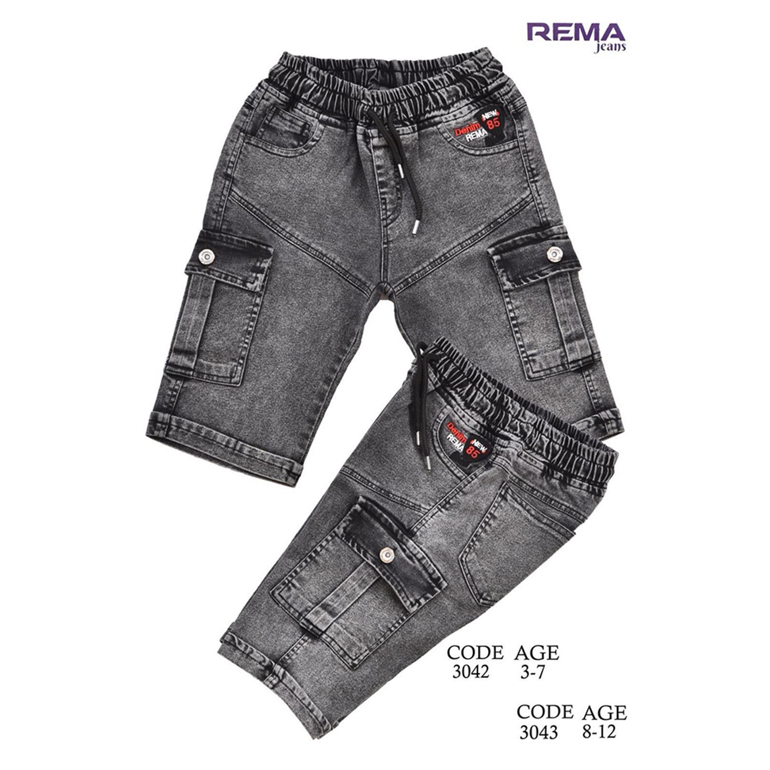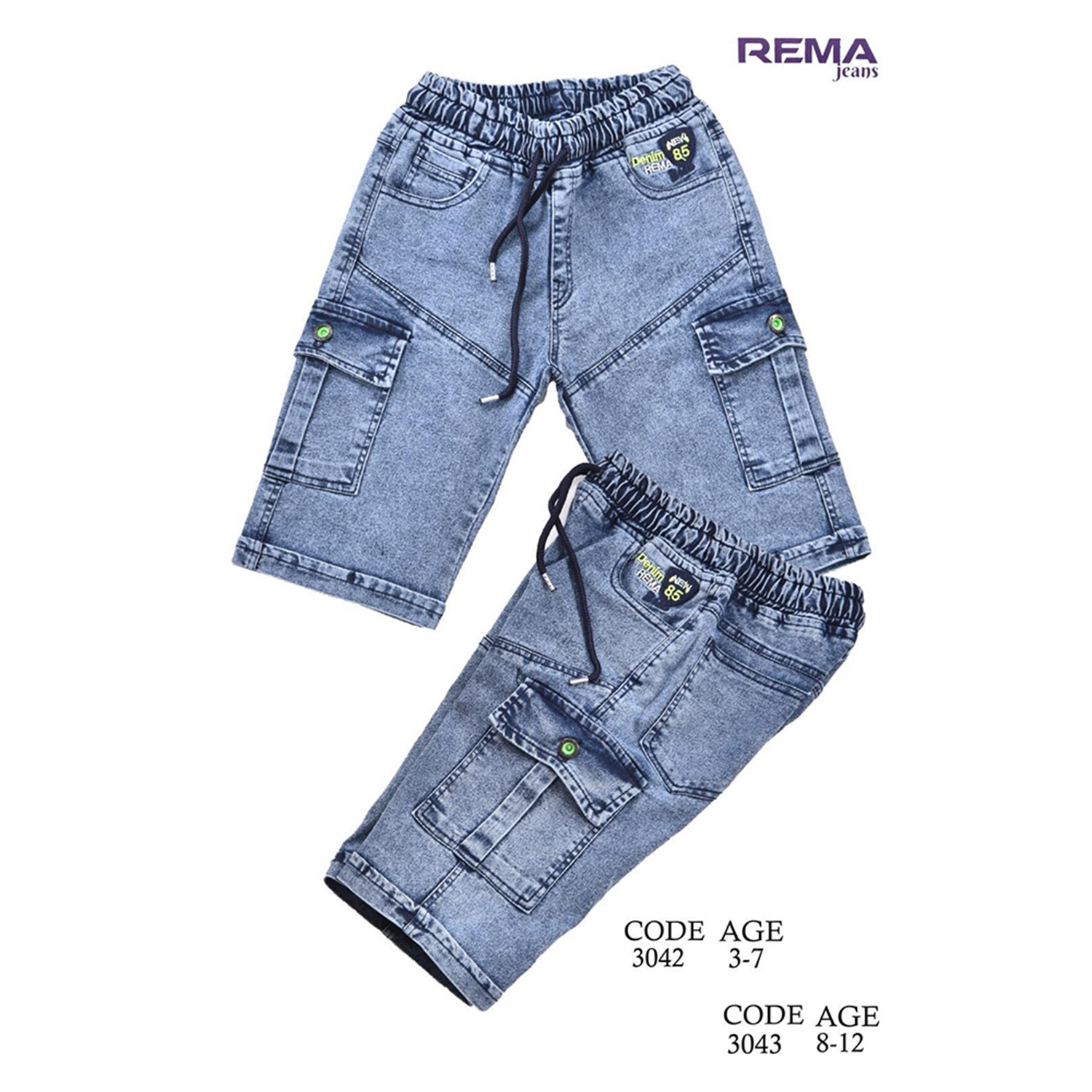 Rema 3042 Erkek Çocuk Kar Yıkama Bacak İki Parça Kargo Cep Kot Kapri 3-7 Yaş