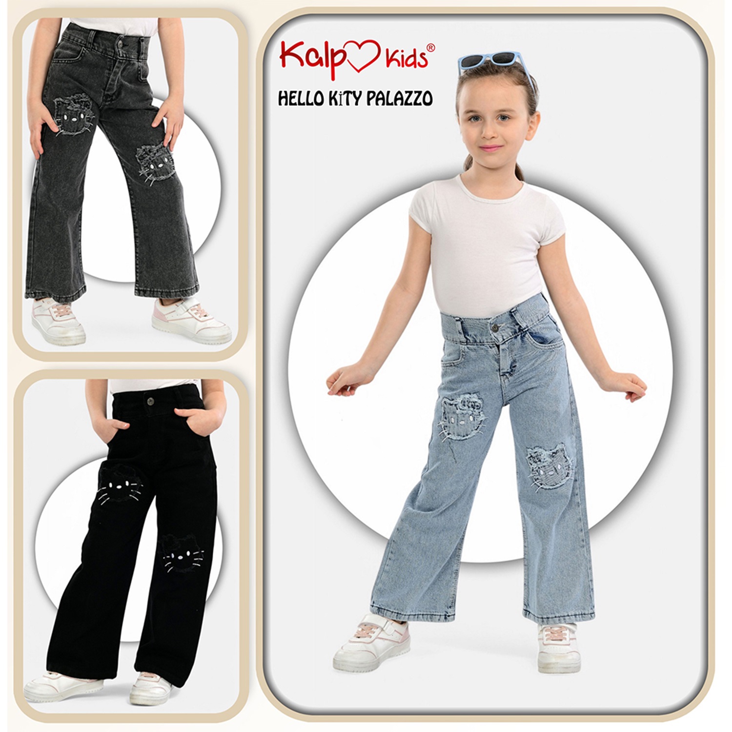 Kalp Kids 1660-1 Kız Çocuk Cotton Palazzo Hello Kıty Kot Pantolon 6-10 Yaş