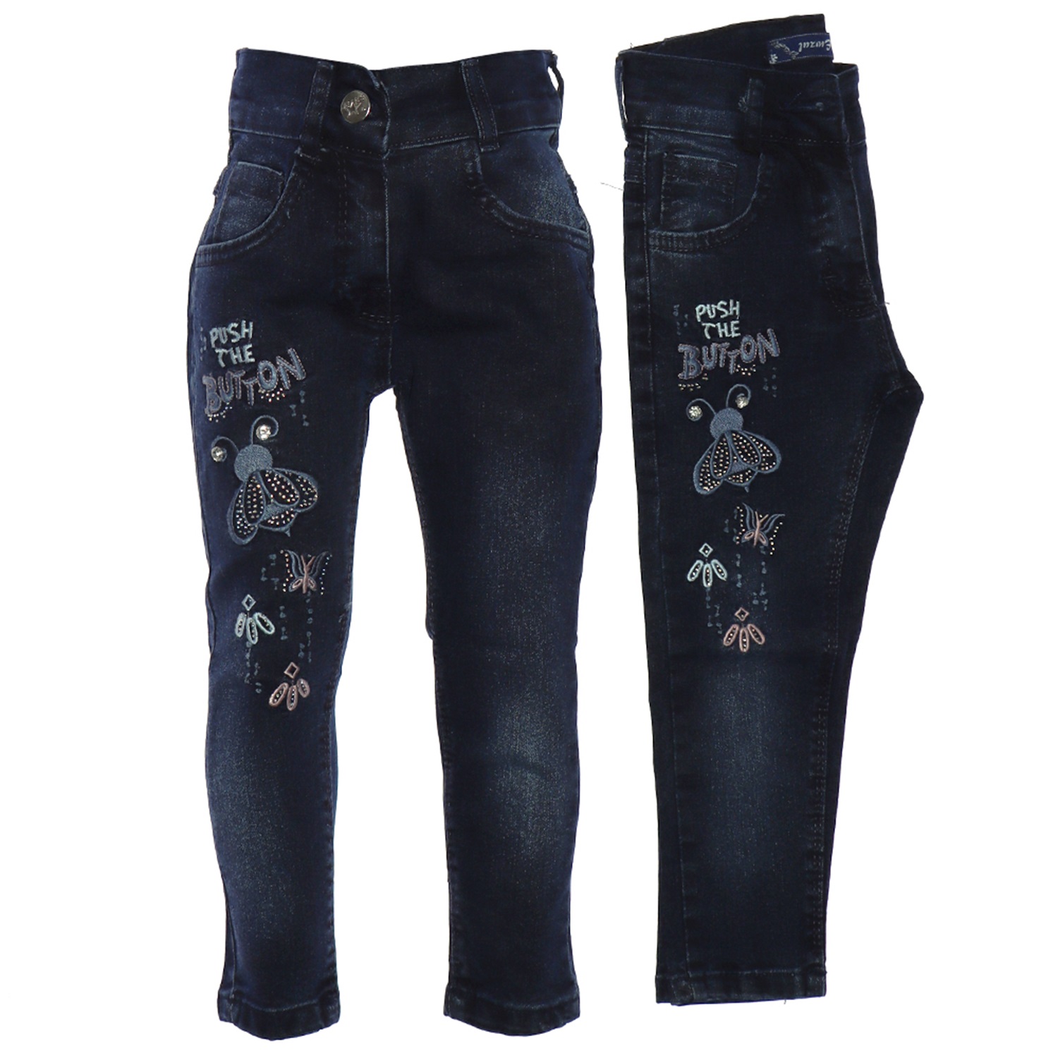 Rema 2460 Kız Çocuk Taşlı Button Nakışlı Kot Pantolon 3-7 Yaş