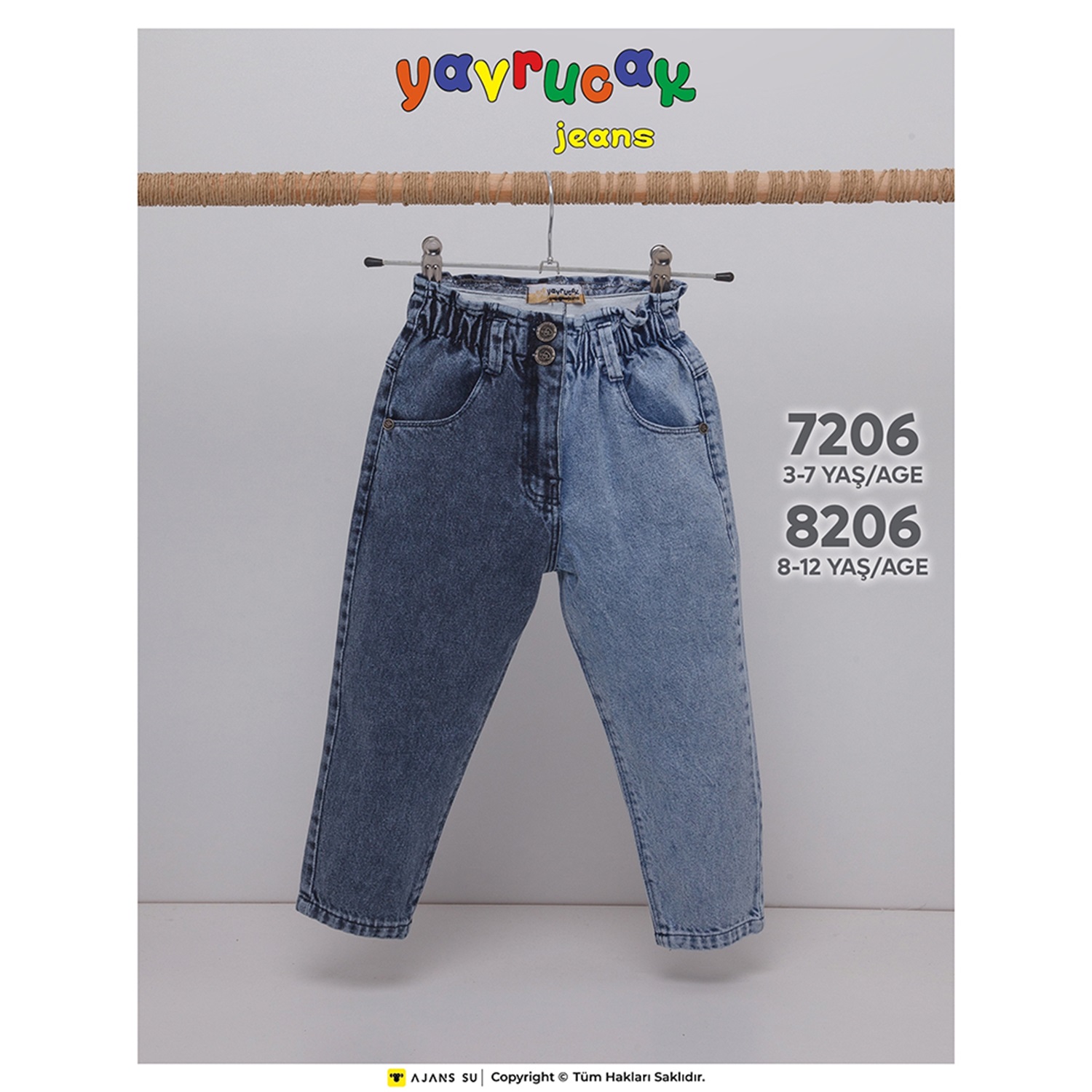 Yavrucak 7206 Kız Çocuk Likralı Beli Lastikli Kot Pantolon 3-7 Yaş