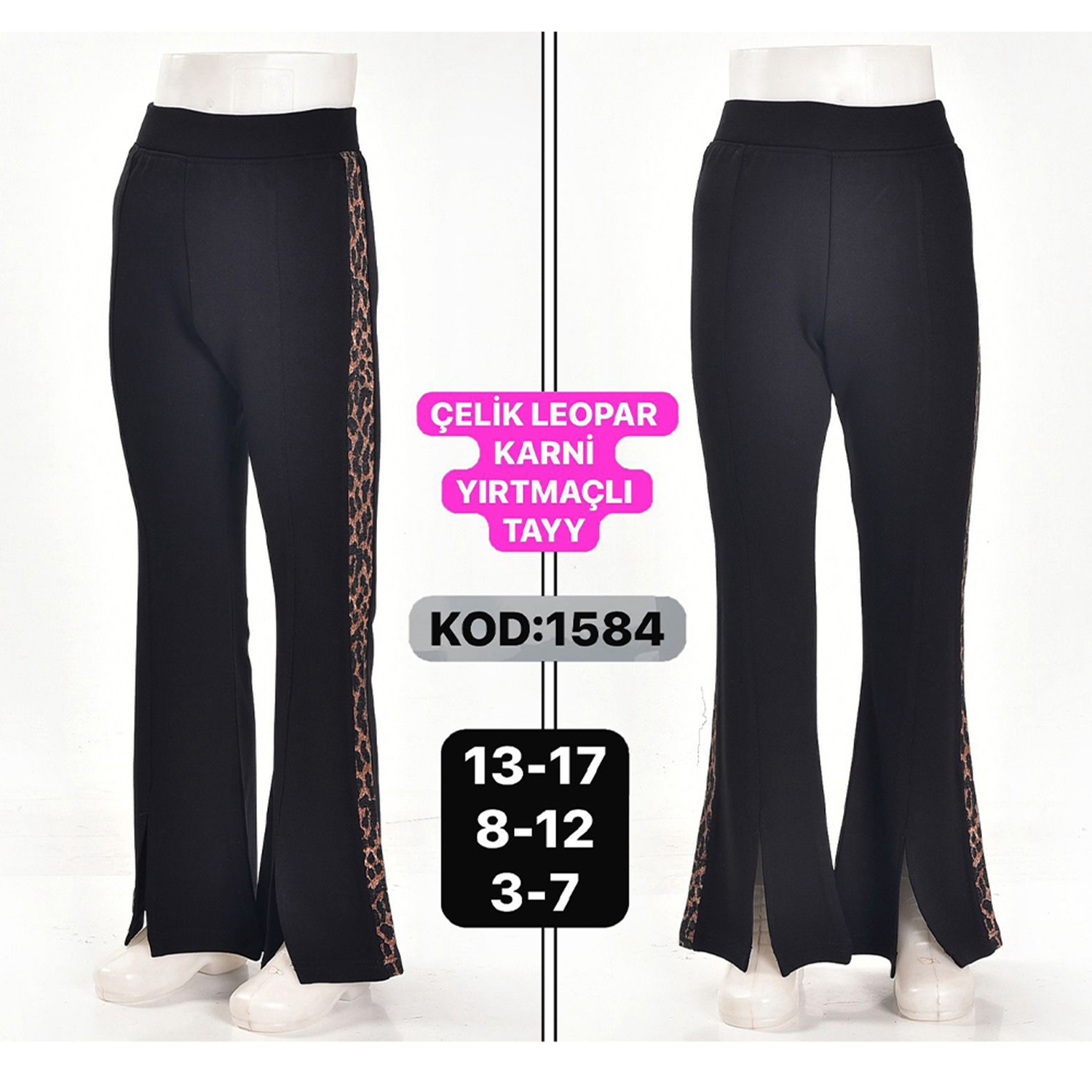 Yılmazcan ÇT 1584-2 Kız Çocuk Ön Yırtmaç Leopar Garnili Tayt 13-17 Yaş