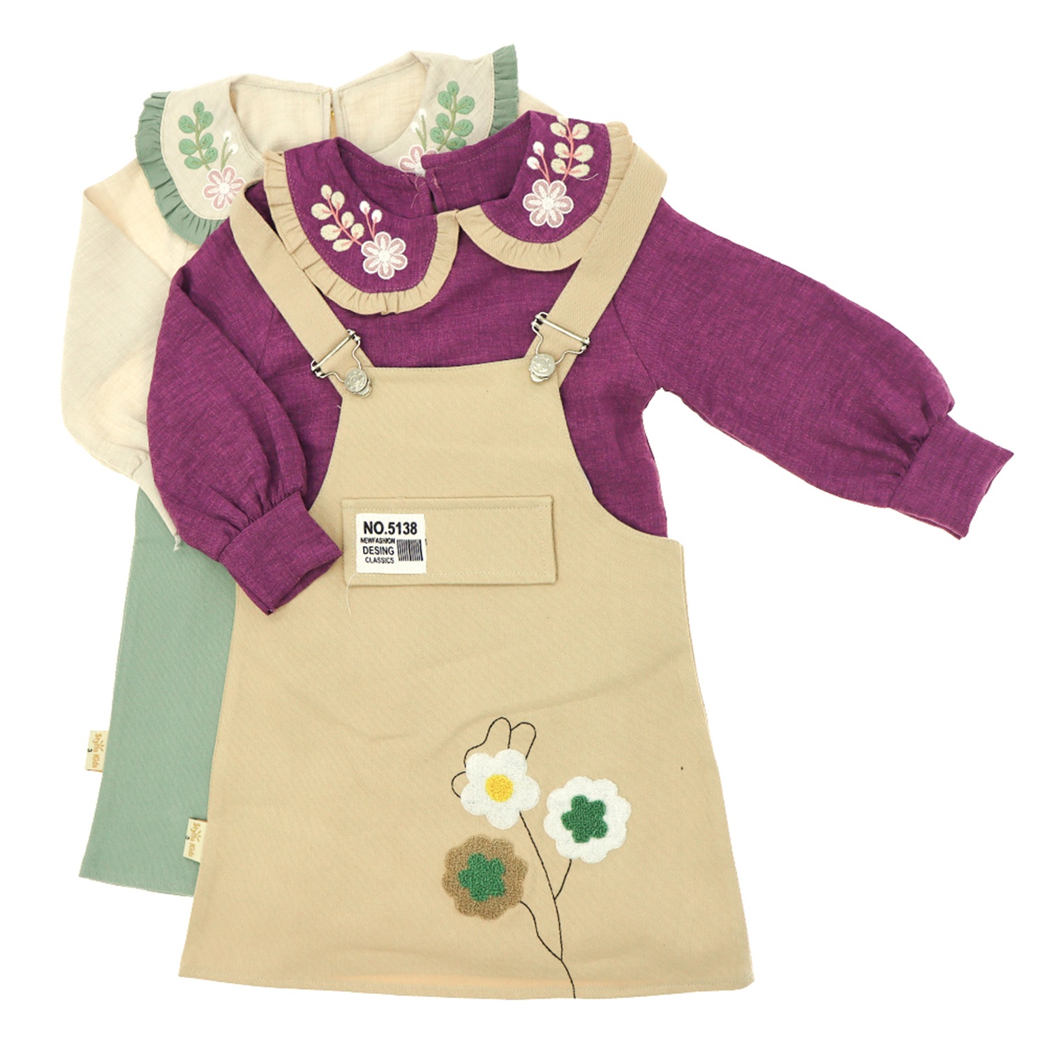 Stylla 1925 Kız Çocuk Papatya Nakışlı Fıfırlı Yakalı Slopet Elbise 3-6 Yaş