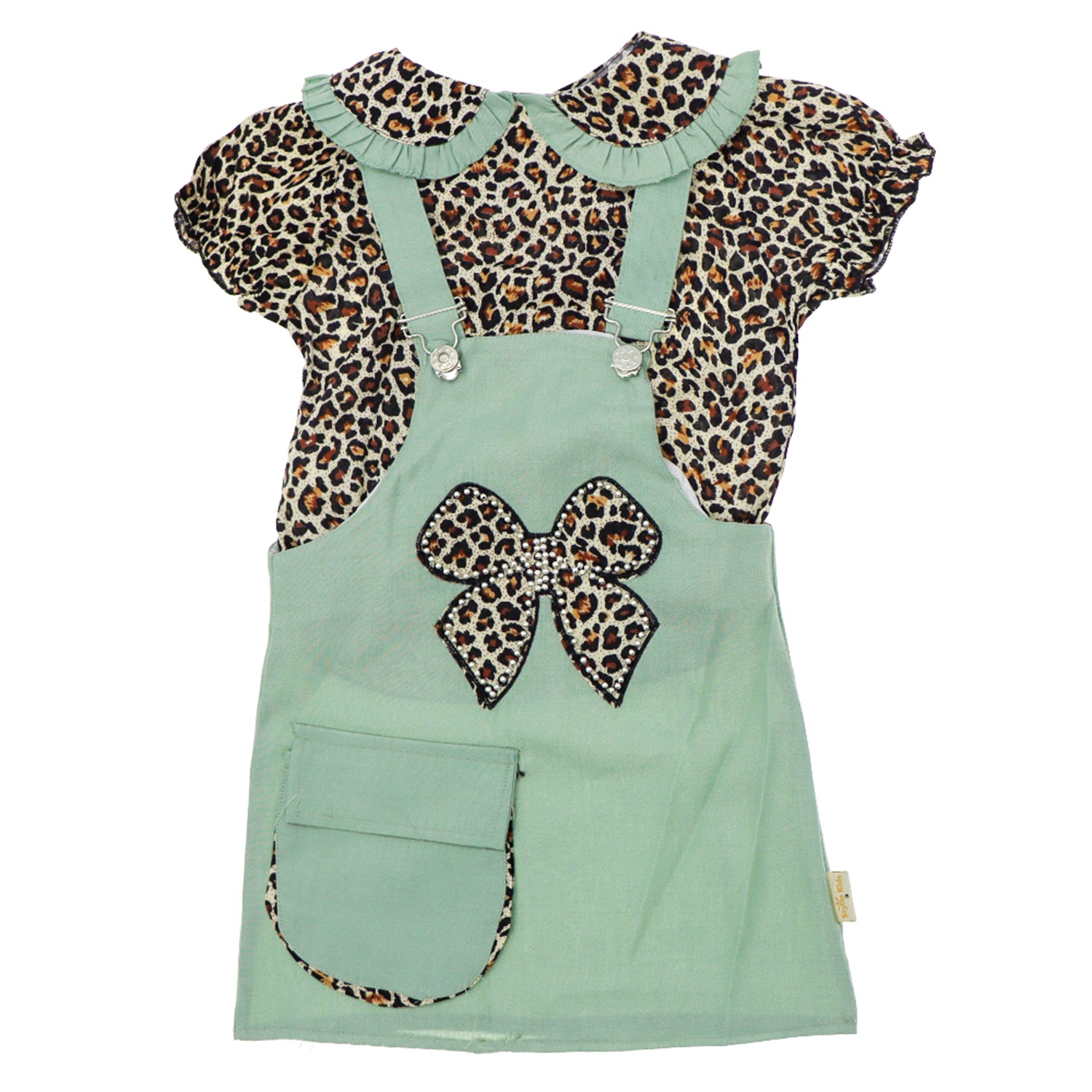Stylla 2000 Kız Çocuk Leopar Taş Baskılı Yakalı Slopet Elbise 3-6 Yaş