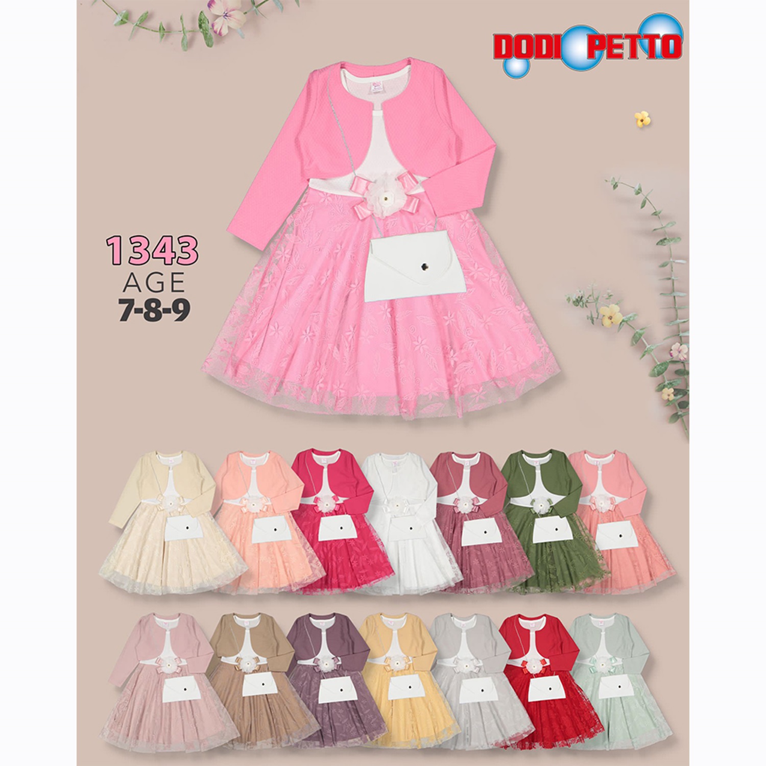 Dodi Petto 1343 Kız Çocuk Uzun Kol Bolerolu Çantalı Elbise 7-9 Yaş