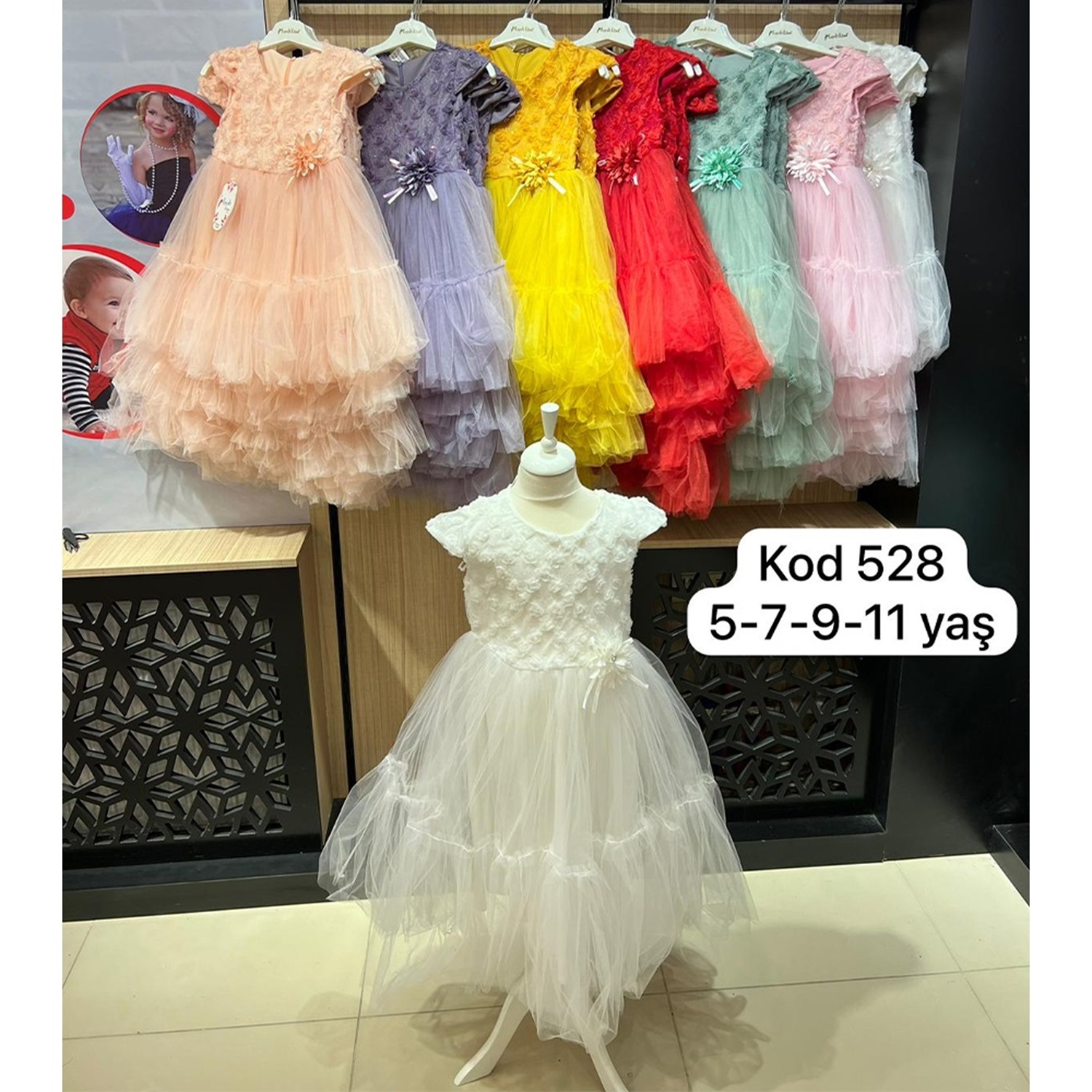 Leydi Lina 528 Kız Çocuk Tüllü Güllü Lazerli Elbise 5-12 Yaş