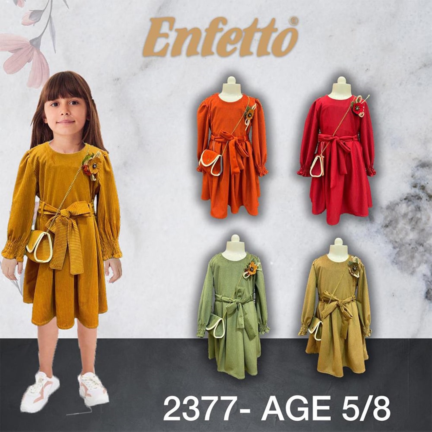 Lotus 2377 Kız Çocuk Kadife Çanta Aks Kemerli Elbise 5-8 Yaş