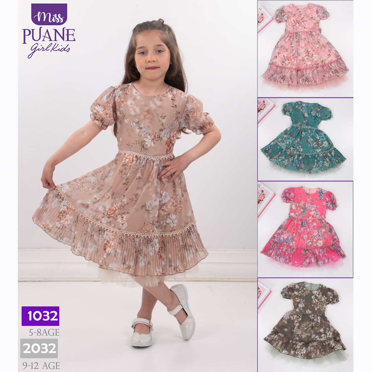 Mıncırık 1032 Kız Çocuk Piliseli Tüllü Kısa Kol Elbise 5-8 Yaş