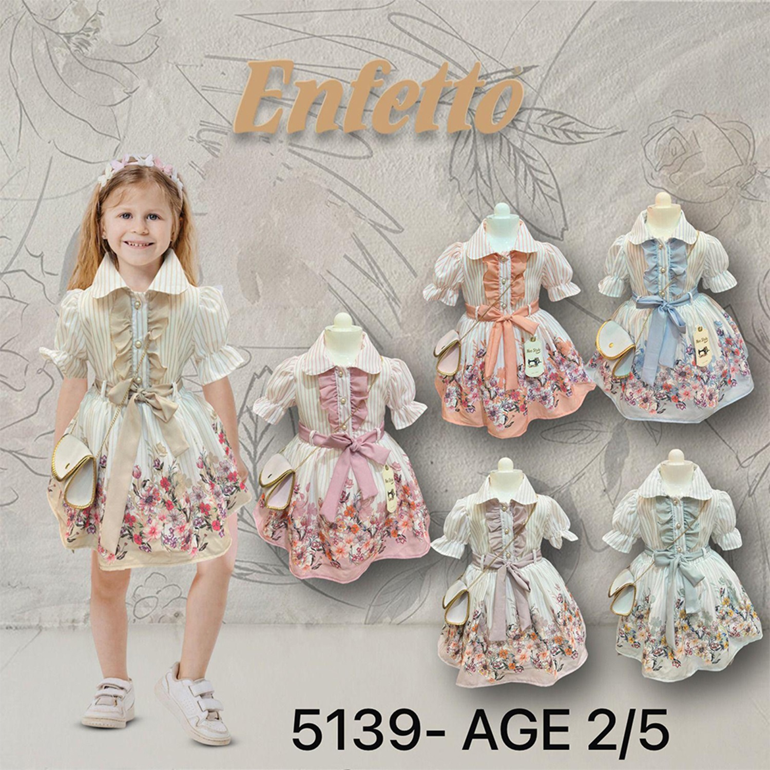 Neo Style 5139 Kız Çocuk Etek Ucu Çiçek Desenli Çantalı Elbise 1-4 Yaş