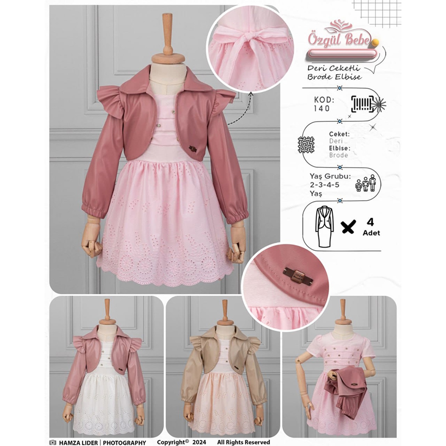 Özgül 140 Kız Çocuk Deri Bolerolu Brode Elbise 2-5 Yaş