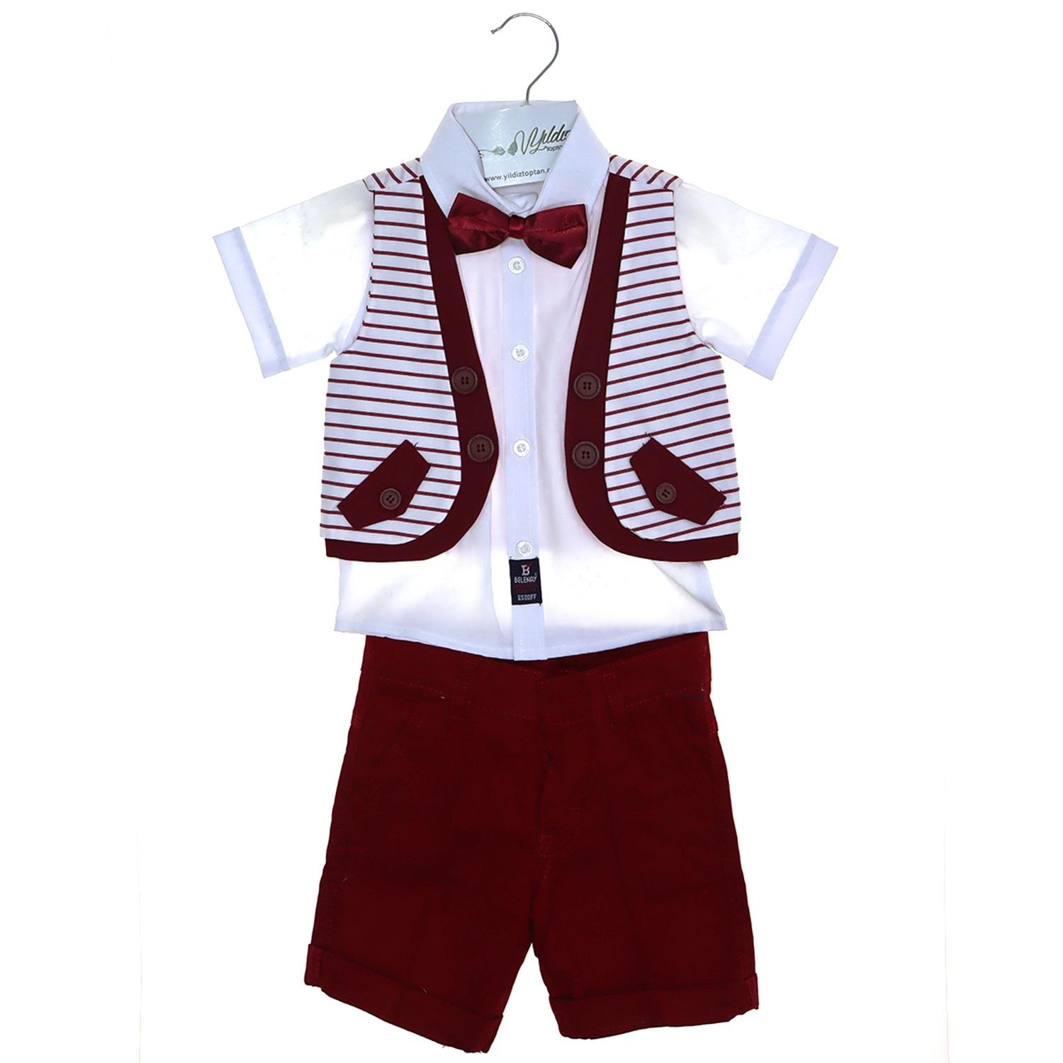 1137 Çizgili Çift Yelekli Erkek Çocuk 3 Lü Takım 5-8 Yaş