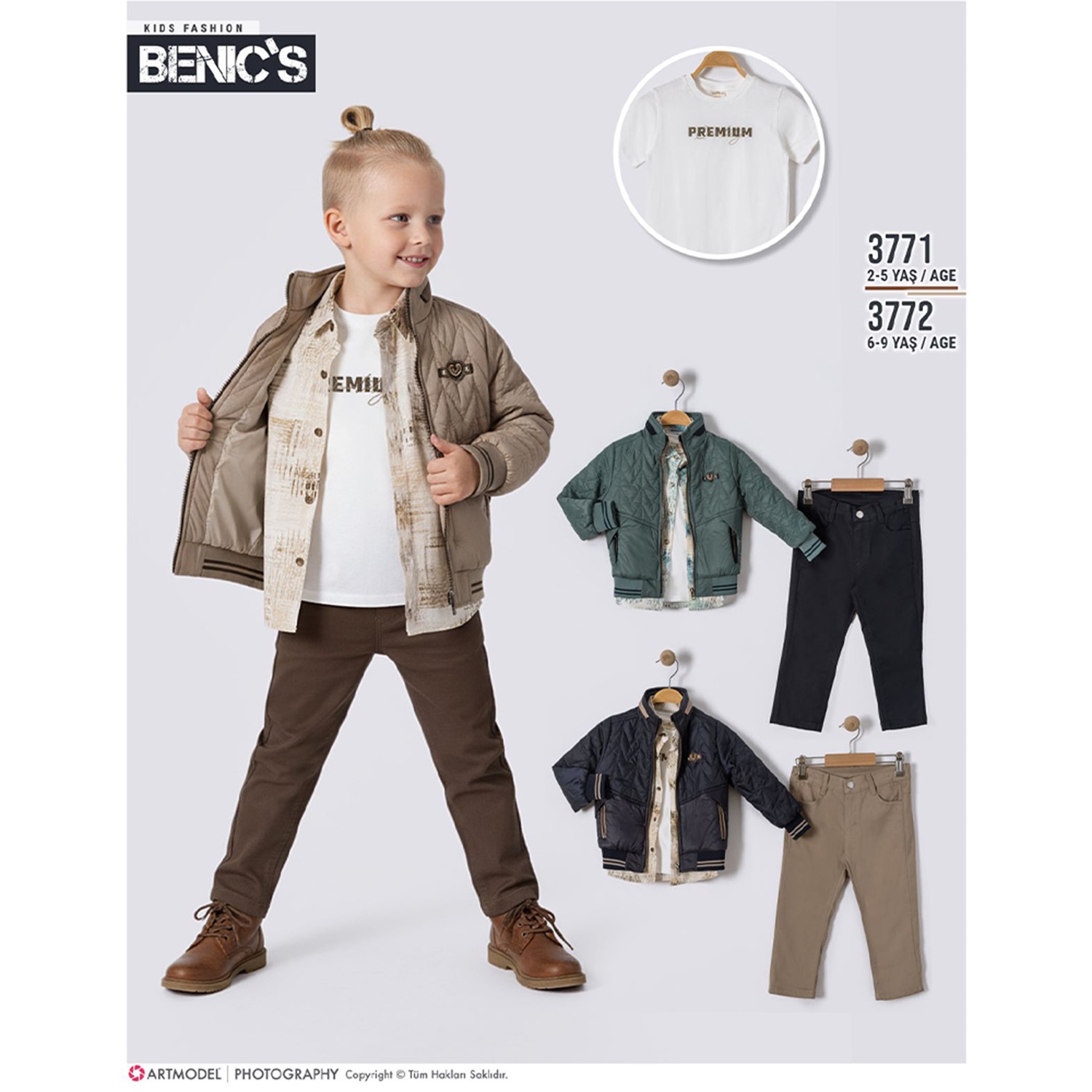 Benics 3772 Erkek Çocuk Sımple Teams Baskılı Fermuarlı Ribana Mont 4 Lü Takım 6-9 Yaş