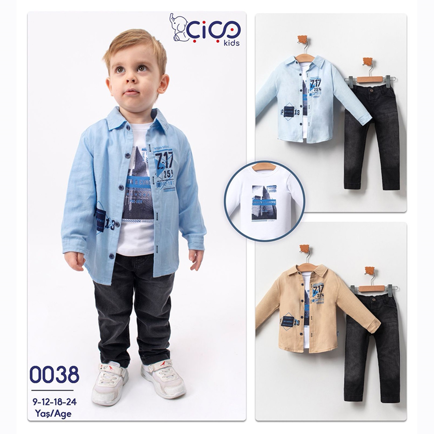 Çiço Kids 0038 Erkek Bebe Baskılı Gömlek 3 Lü Takım 9-24 Ay