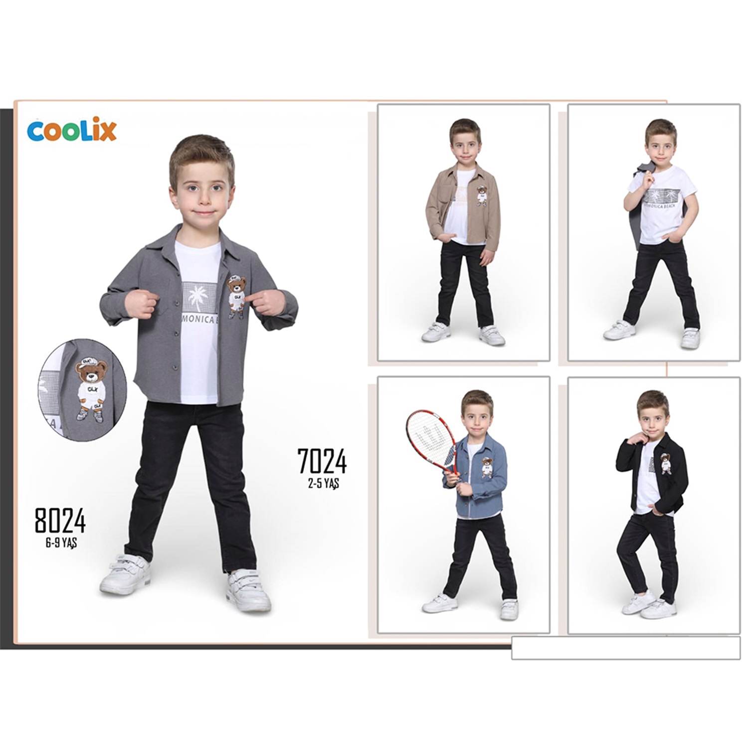 Coolix 7024 Erkek Çocuk Sevimli Ayıcık Arma Nakışlı Gömlek 3 lü Takım 2-5 Yaş