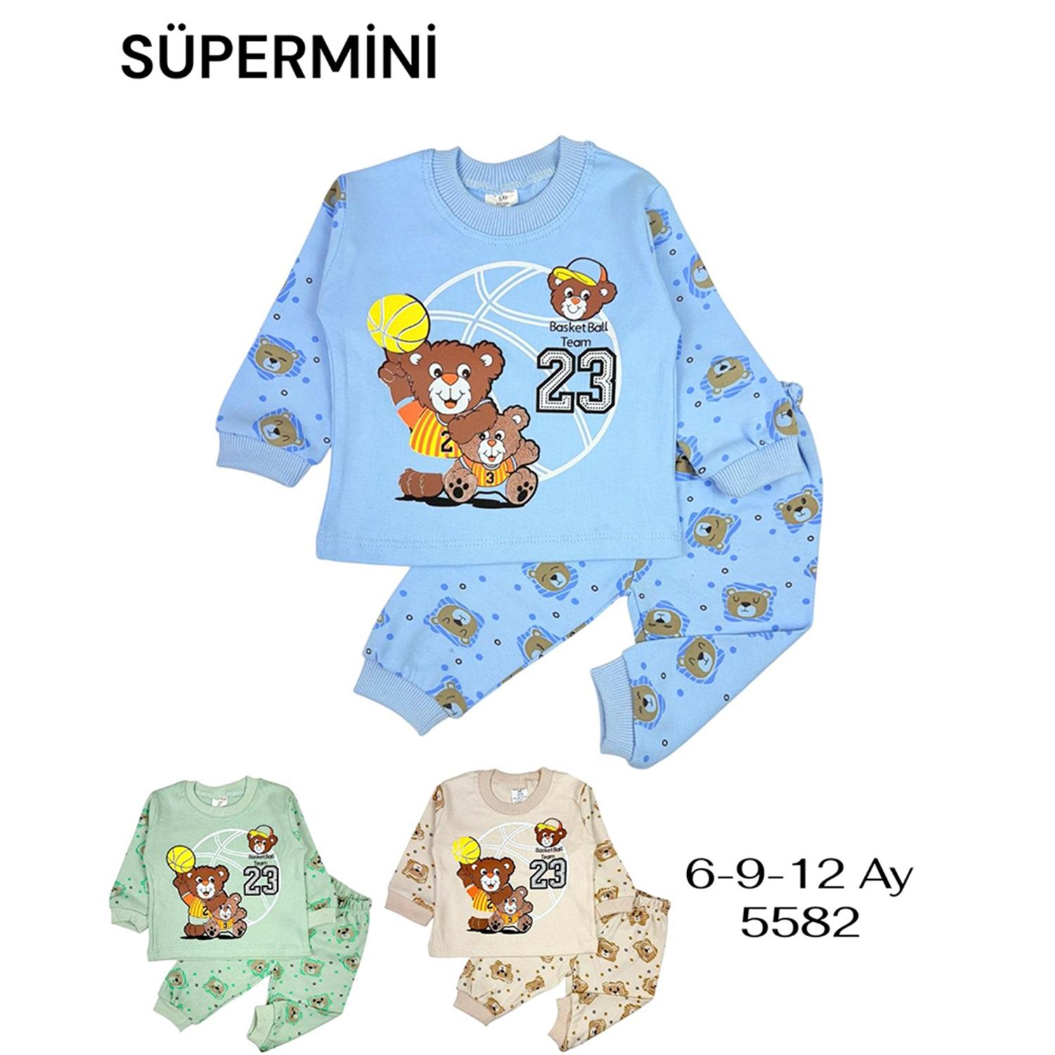 Süpermini 5582 Erkek Bebe Penye Sevimli Basketbolcu Ayıcıklar Baskılı Takım 6-12 Ay