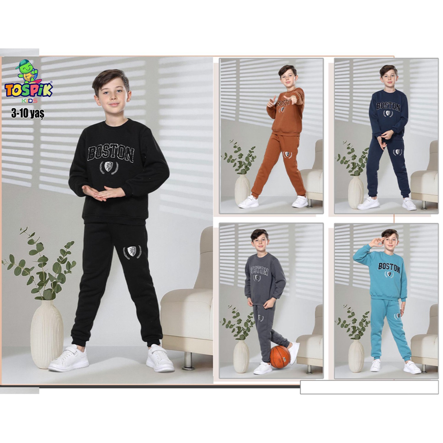 Tospik 30025 Erkek Çocuk 3 ip Boston Nakışlı Sıfır Yaka Takım 3-10 Yaş