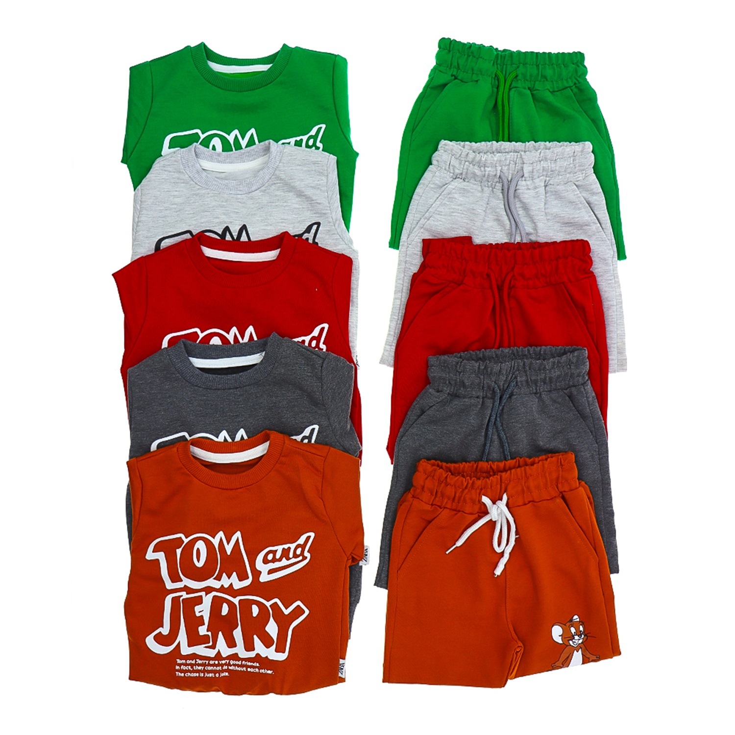 ZARA-2028 Erkek Çocuk Penye Sıfır Yaka Tom And Jerry Baskılı Takım 2-8 Yaş