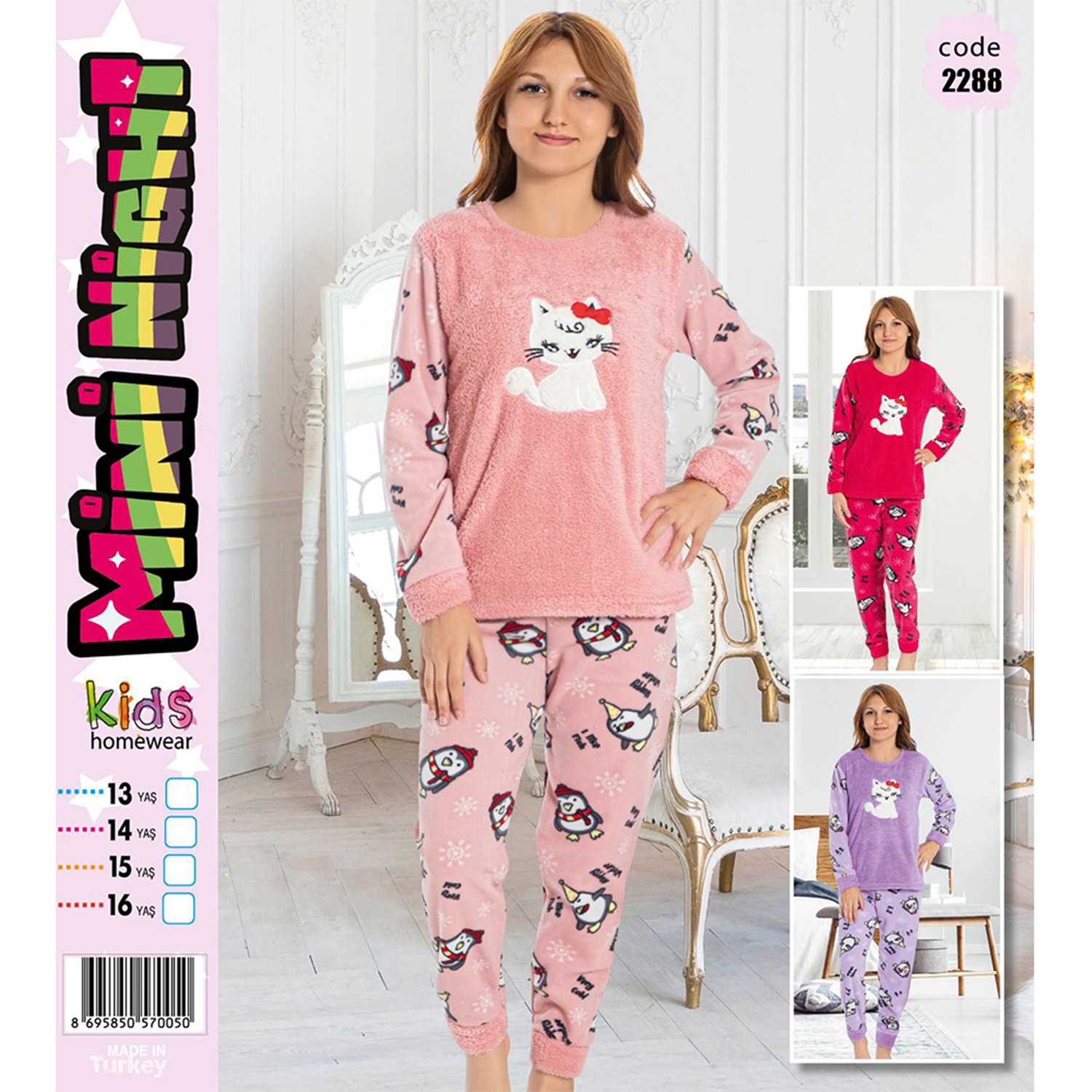 Mini Night 2288 Kız Çocuk Welsoft Kedi Nak Pijama Takımı 9-12 Yaş