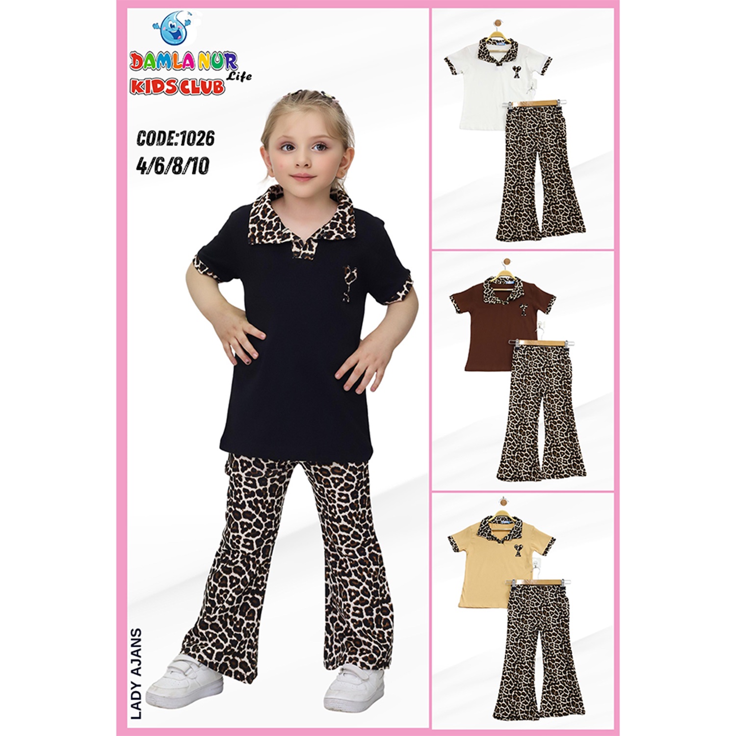 Damlanur Kız Çocuk Yakalı Leopar Desenli İspanyol Paça Takım 4-10 Yaş