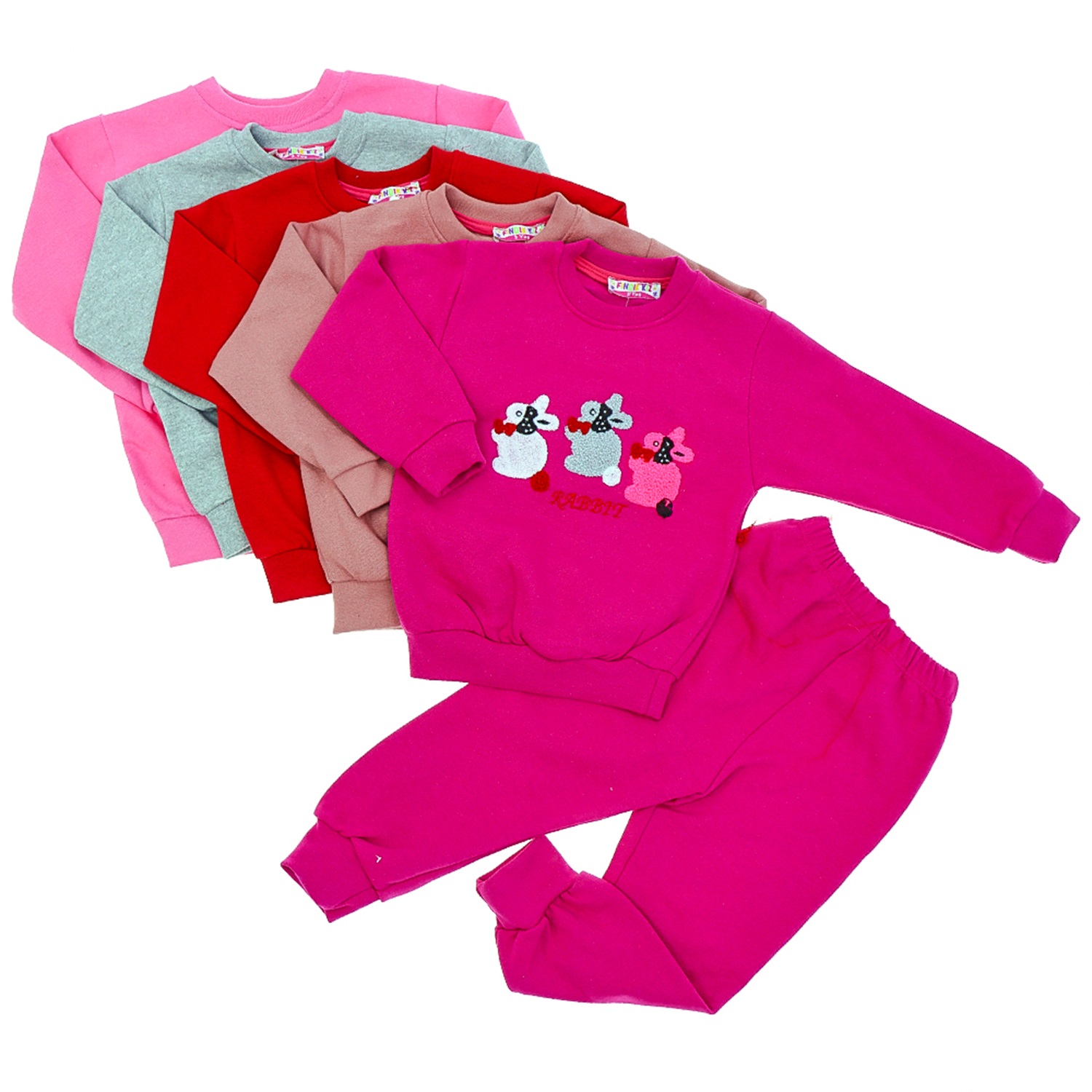 Fındık Kız Çocuk Penye Süzine 3 Tavşan Nakışlı Takım 3-6 Yaş
