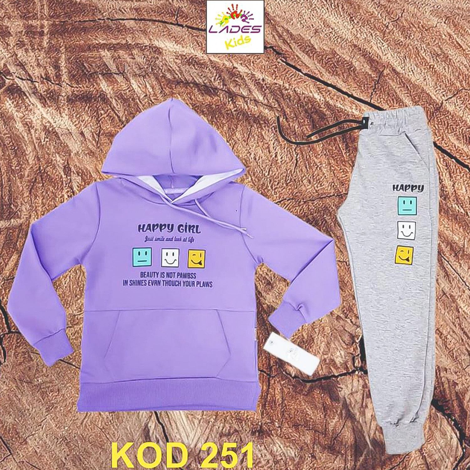 Lades 251 Kız Çocuk Penye Happy Girl Kap Kanguru Cep Takım 7-10 Yaş