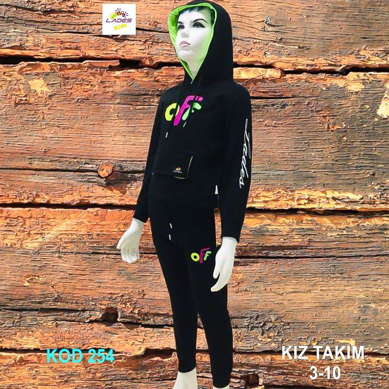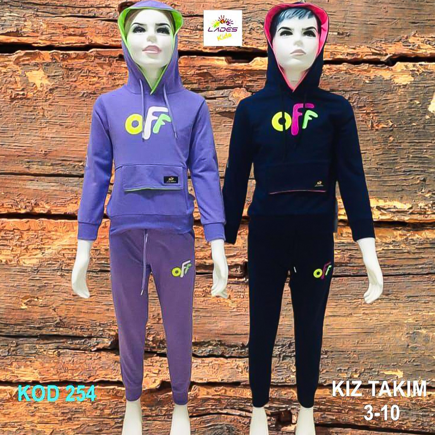 Lades 254 Kız Çocuk Penye OFF Bas Kap Kanguru Cep Takım 7-10 Yaş