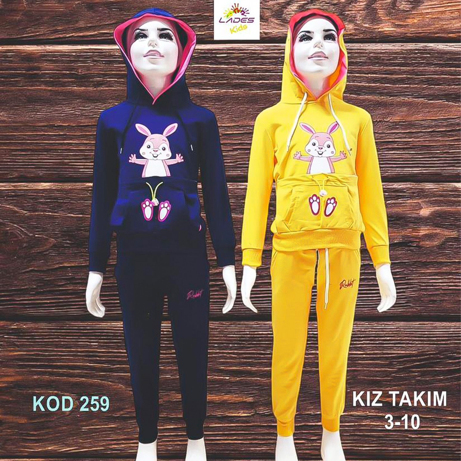 Lades 259 Kız Çocuk Penye Tavşan Bas Kap Kanguru Cep Takım 7-10 Yaş