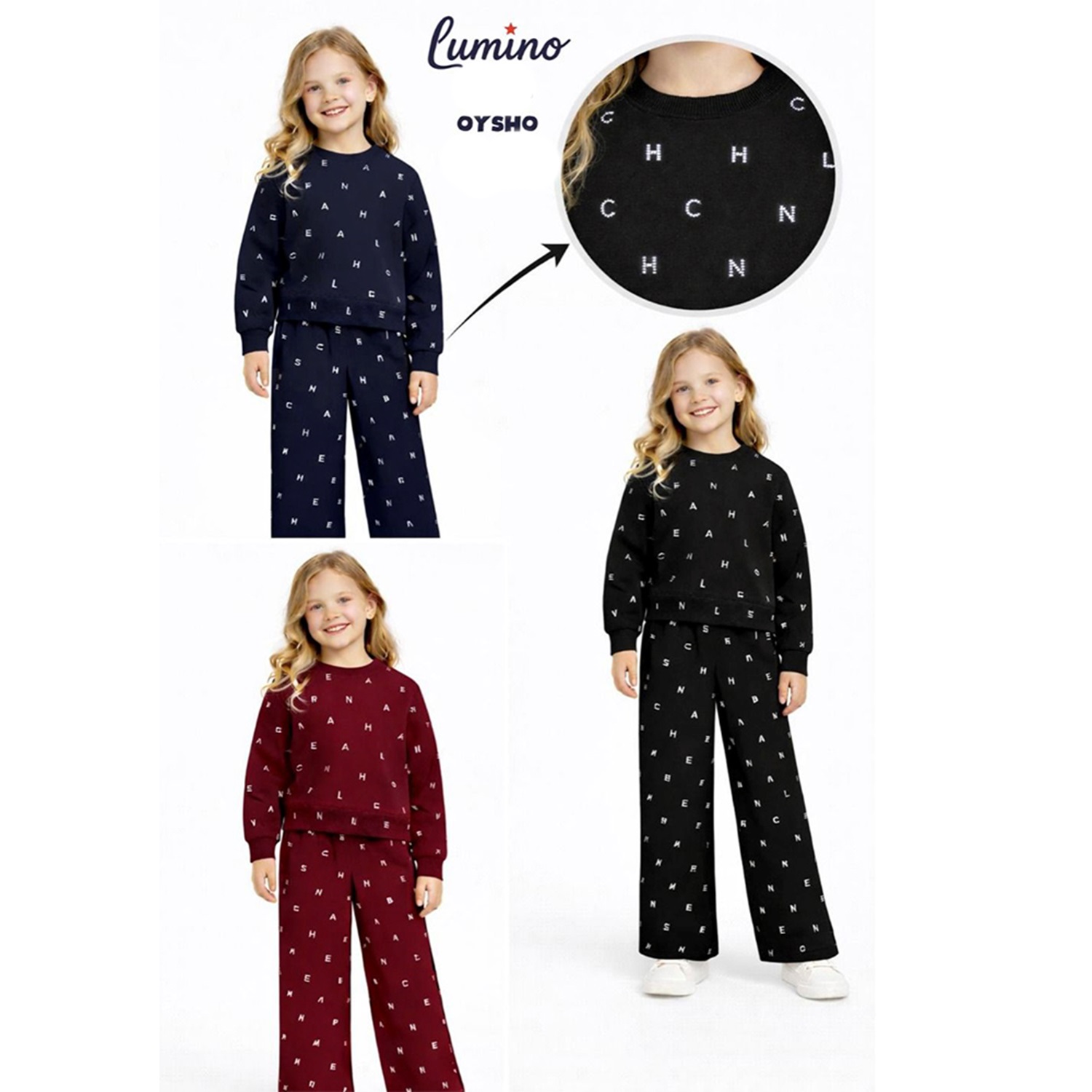 Lumino 20474 Kız Çocuk Oysho Taş Harf Baskılı 2 Li Takım 9-13 Yaş
