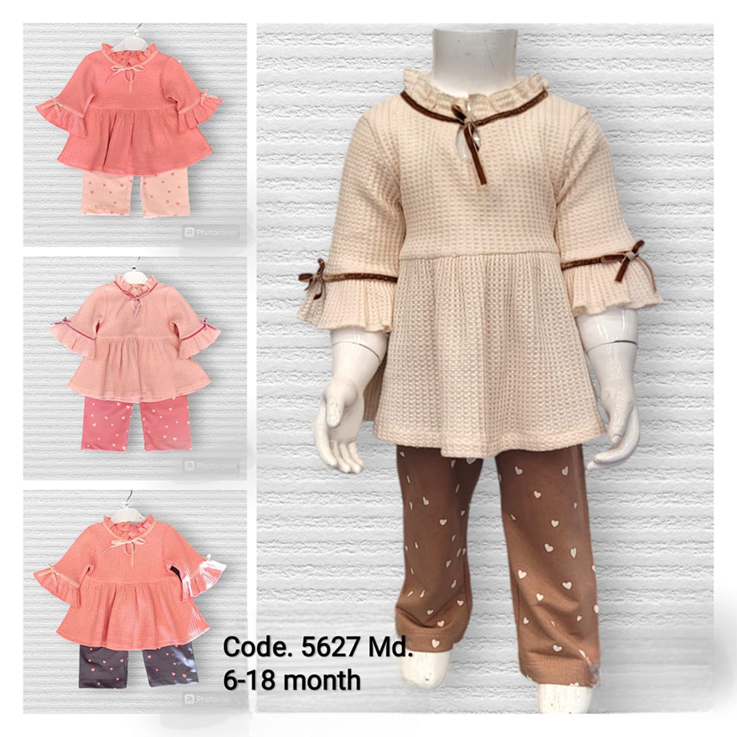 Lupita 5627 Kız Çocuk Waffel Kadife Şeritli Takım 6-18 Ay