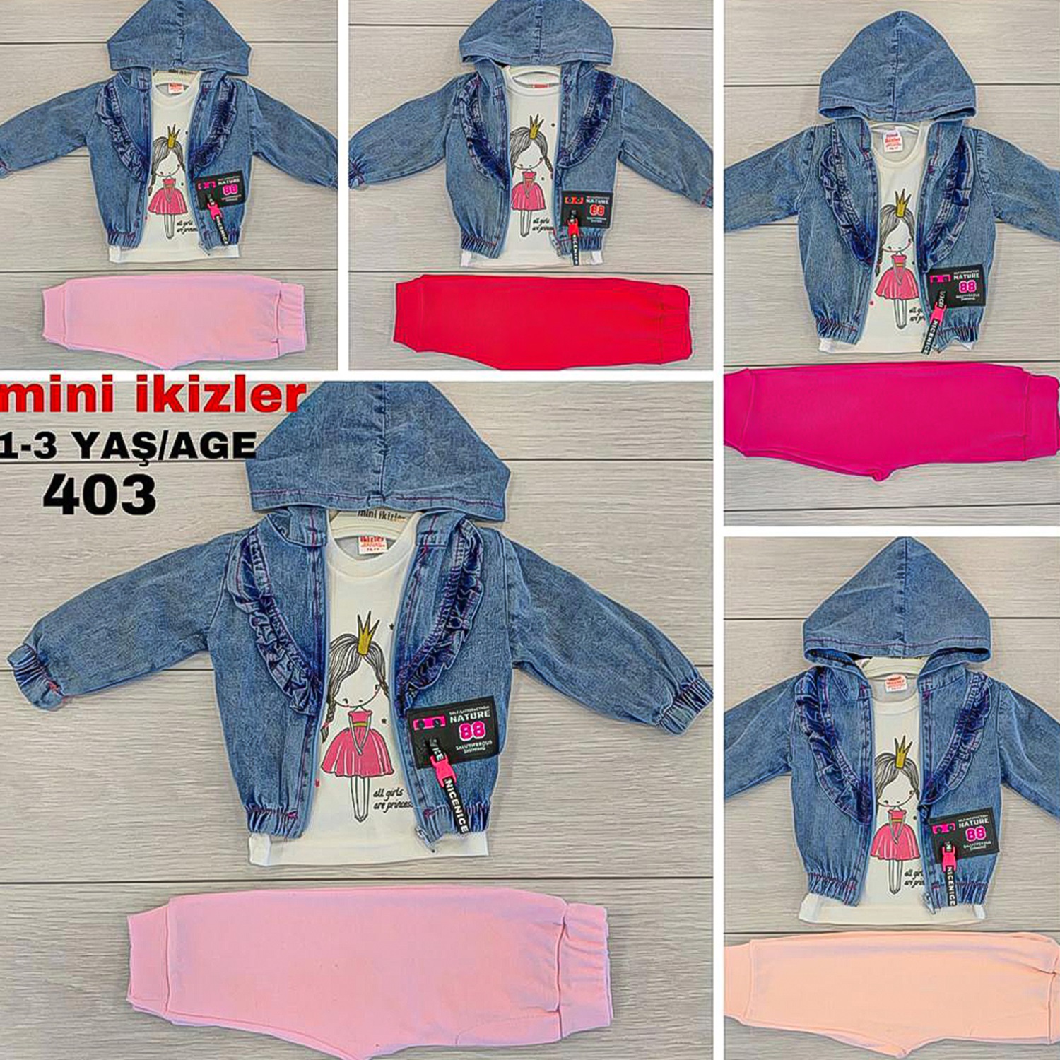Mini İkizler 403 Kız Çocuk Nature Armalı Ferm Kot Ceketli 3 Lü Takım 1-3 Yaş