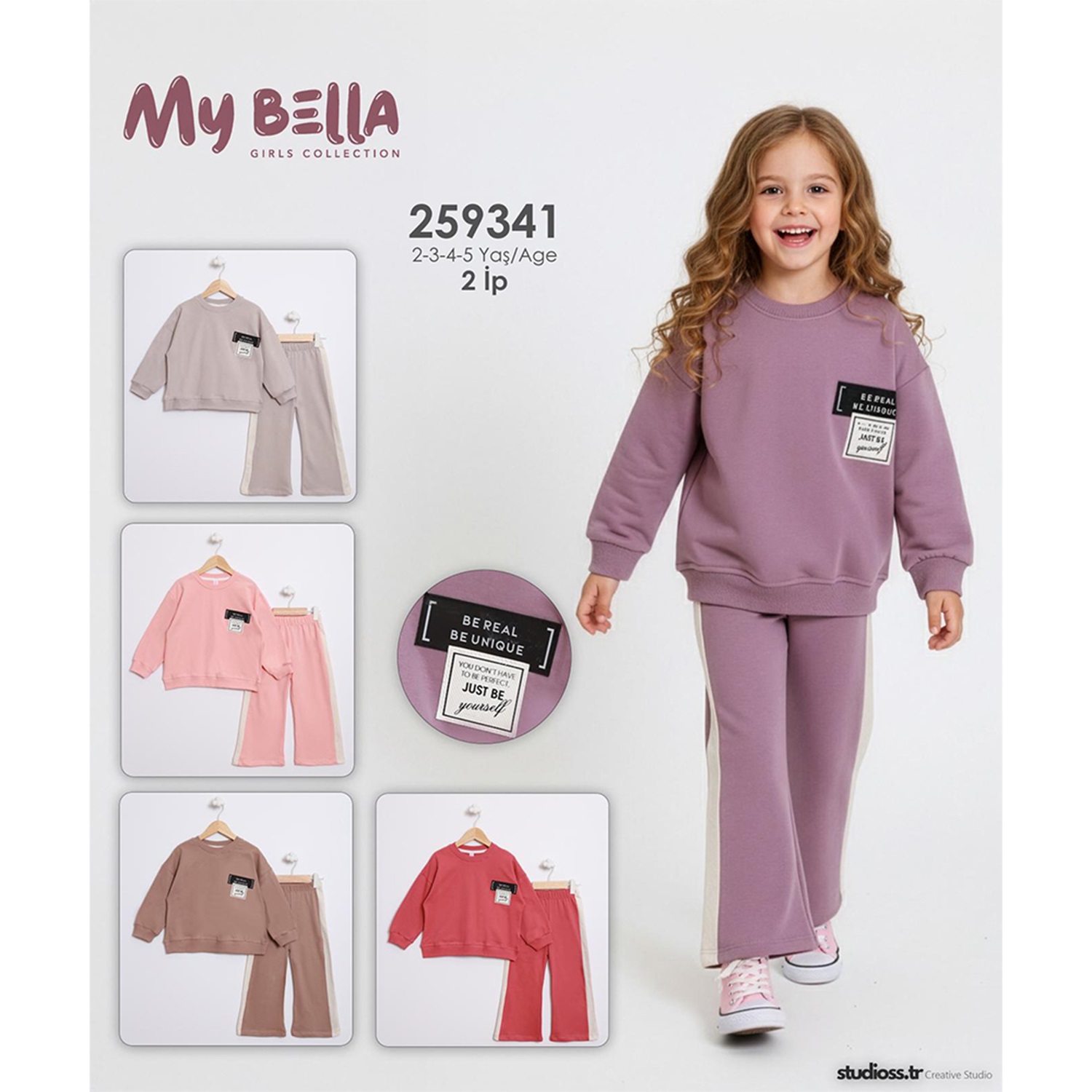 My Bella 259341 Kız Çocuk 2 iplik Just be Nakışlı Armalı Takım 2-5 Yaş