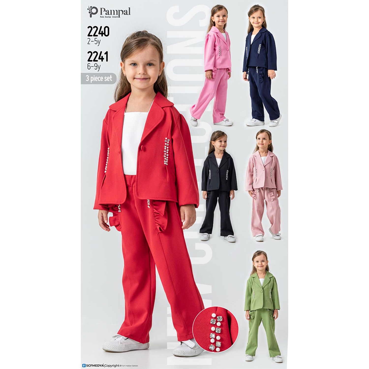 Pampal 2240 Kız Çocuk İncili Desenli 3 Lü Ceketli Takım 2-5 Yaş