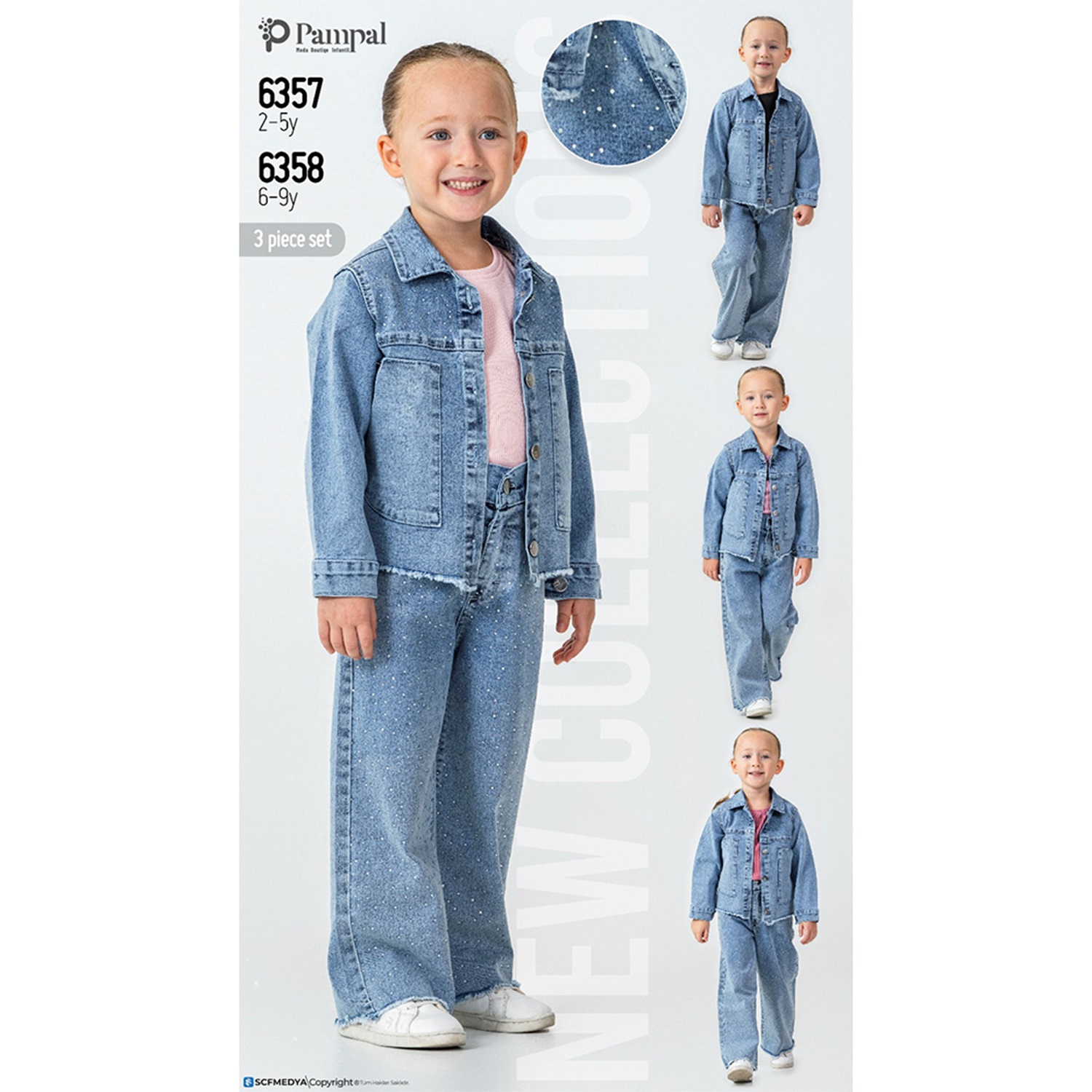 Pampal 6358 Kız Çocuk Çantalı Papatya Nakışlı Kotlu 3 Lü Takım 6-9 Yaş