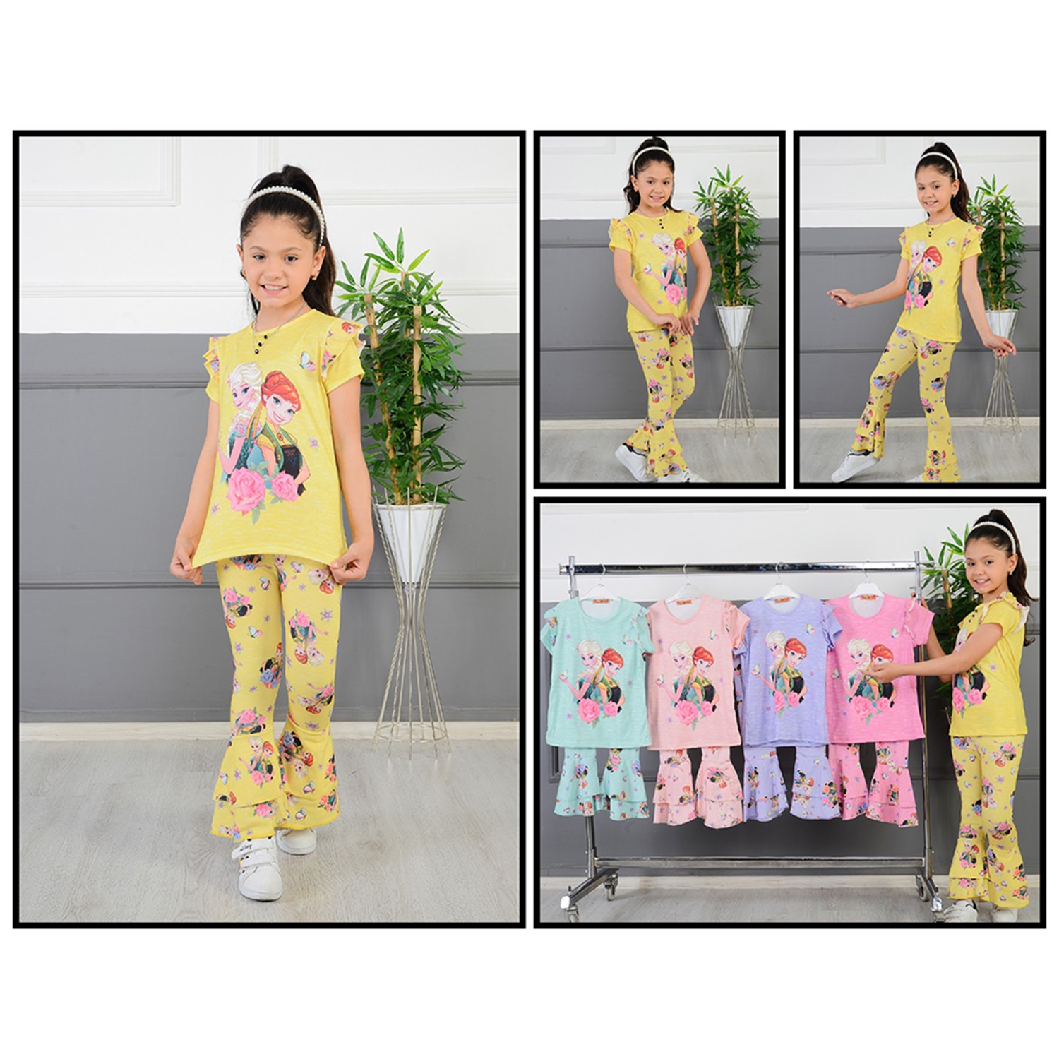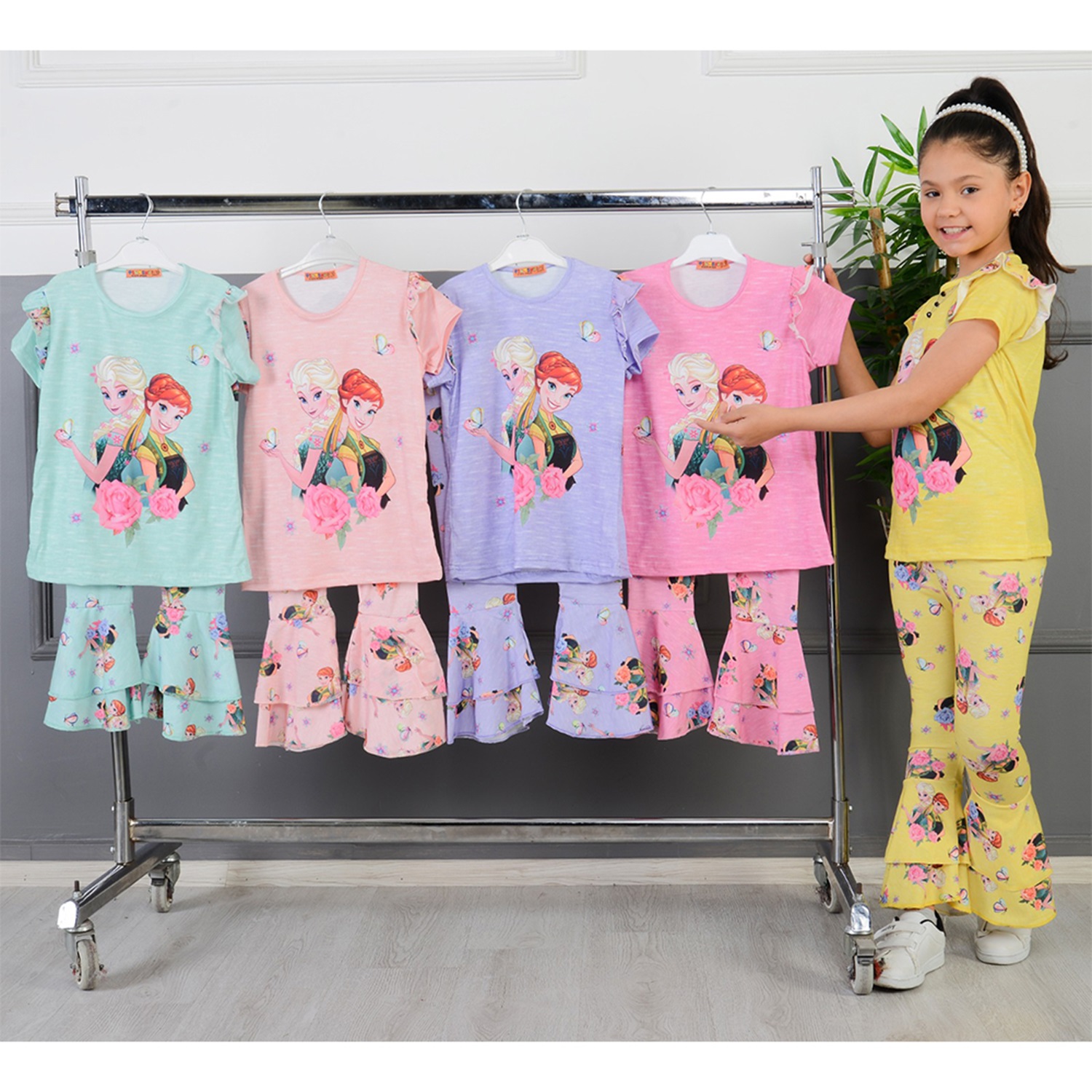 Tintini Kız Çocuk Elsa Ve Anna Baskılı İspanyol Tayt Tişört Takım 3-9 Yaş