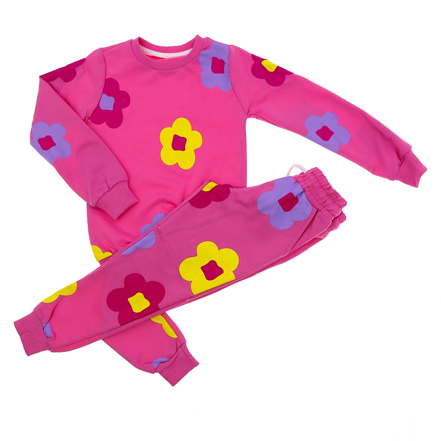 ZARA-1041 Kız Çocuk Penye Sıfır Yaka Çiçek Baskılı Takım 2-8 Yaş