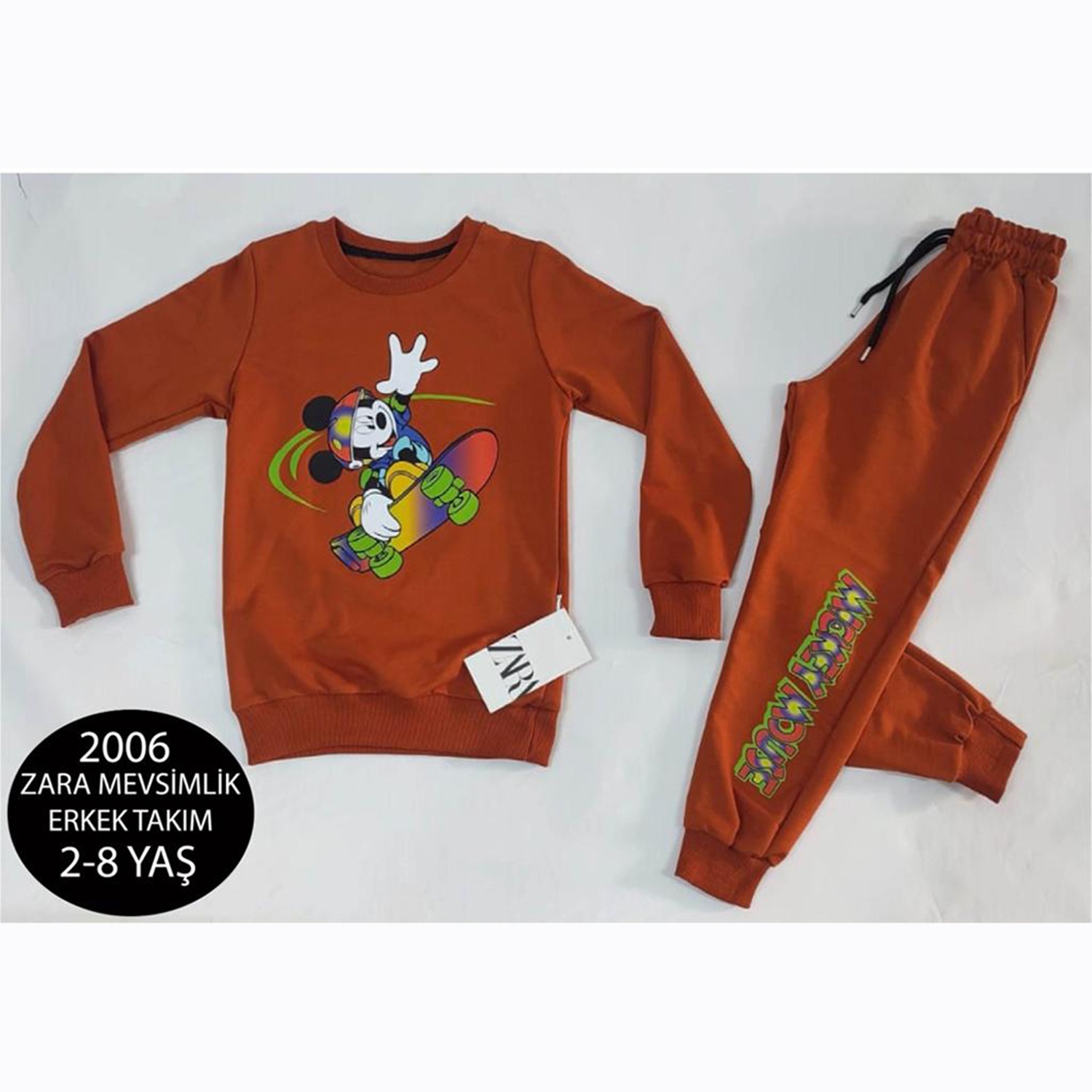 ZARA-2006 Erkek Çocuk Penye Sıfır Yaka Miki Baskılı Takım 2-8 Yaş