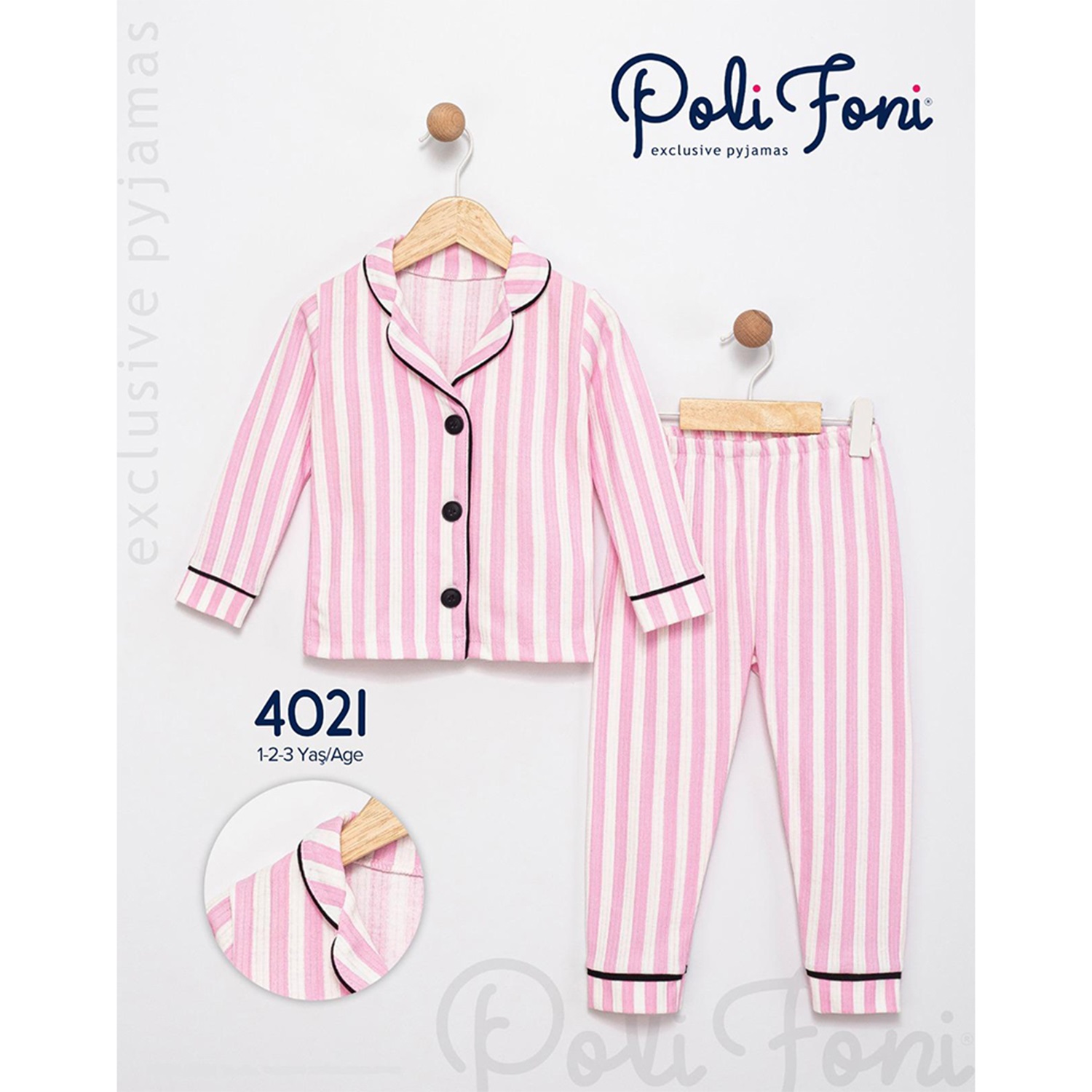 Polifoni 4021 Kız Çocuk Penye Çizgili Boydan Düğmeli Pijama Takımı 1-3 Yaş