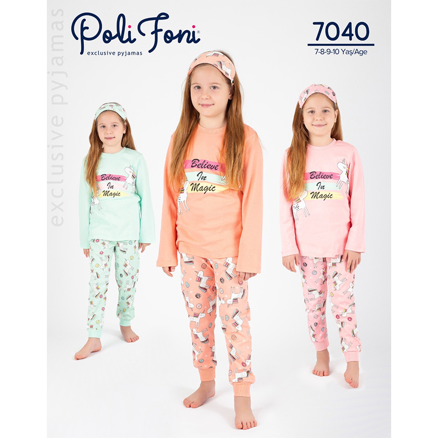 Polifoni 7040 Kız Çocuk Penye Unicorn Baskılı Pijama Takımı 7-10 Yaş