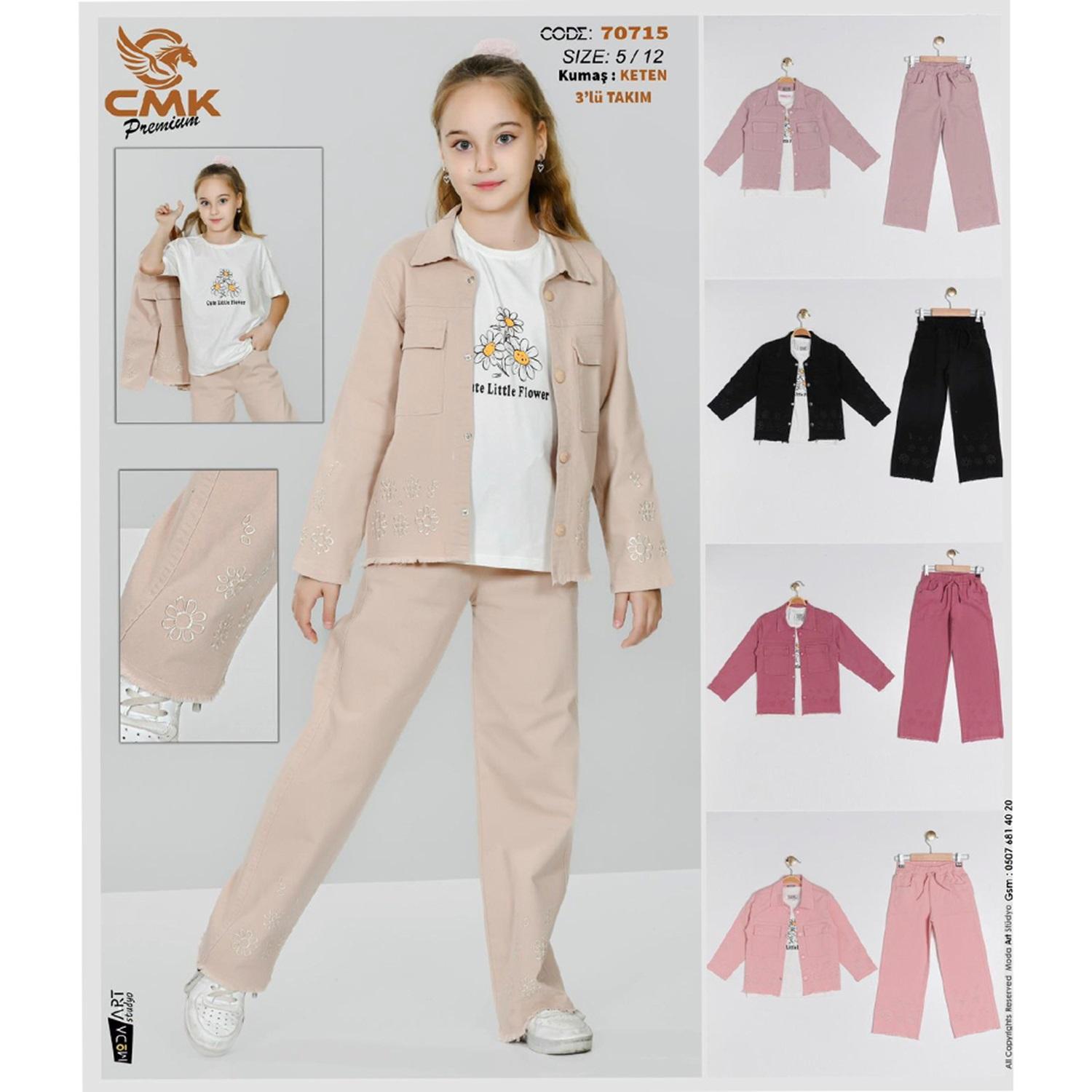 CMK KIDS 70715 Kız Çocuk 2 ip Taş Nakışlı 3 Lü Takım 5-12 Yaş