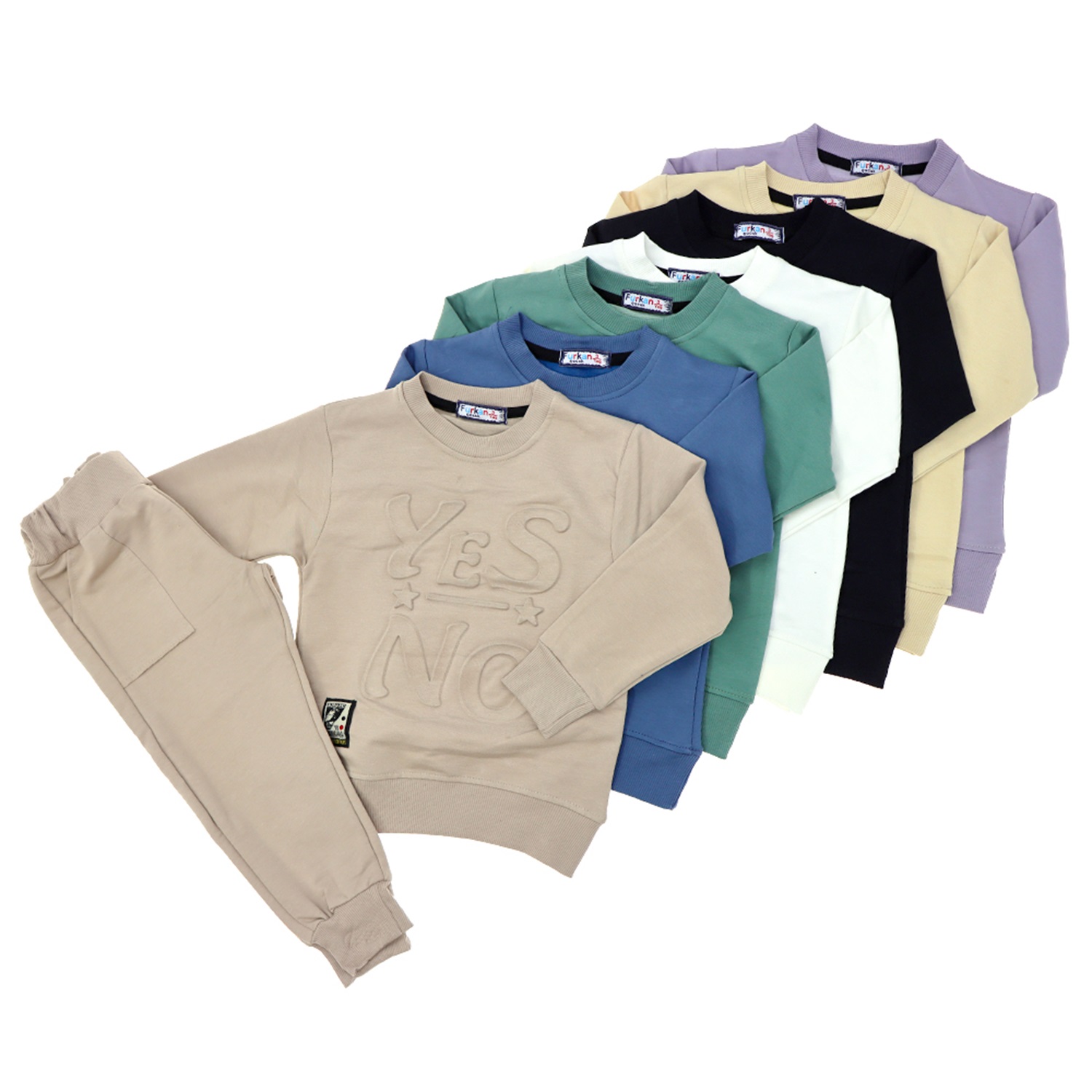 Furkan 8002 Erkek Çocuk Penye Kabartma Yes No Baskılı Sıfır Yaka Takım 7-10 Yaş