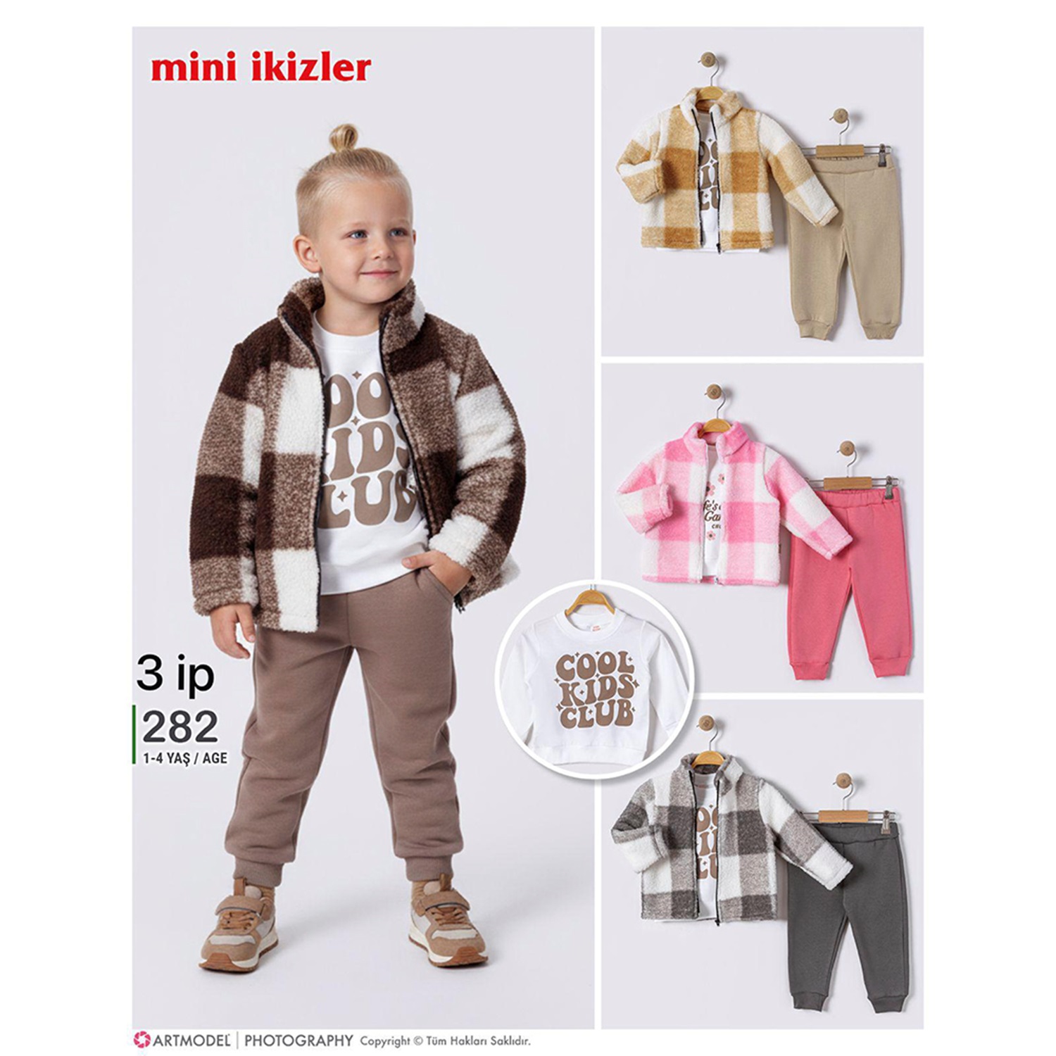 Mini İkizler 282 Erkek Çocuk Polar Ekose Desenli Takım 1-4 Yaş