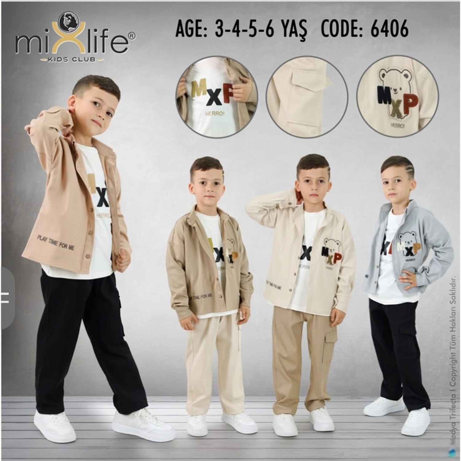 Mixperry 6406 Erkek Çocuk Kabardin Mxp Süzine Nakışlı 3 Lü Takım 3-6 Yaş