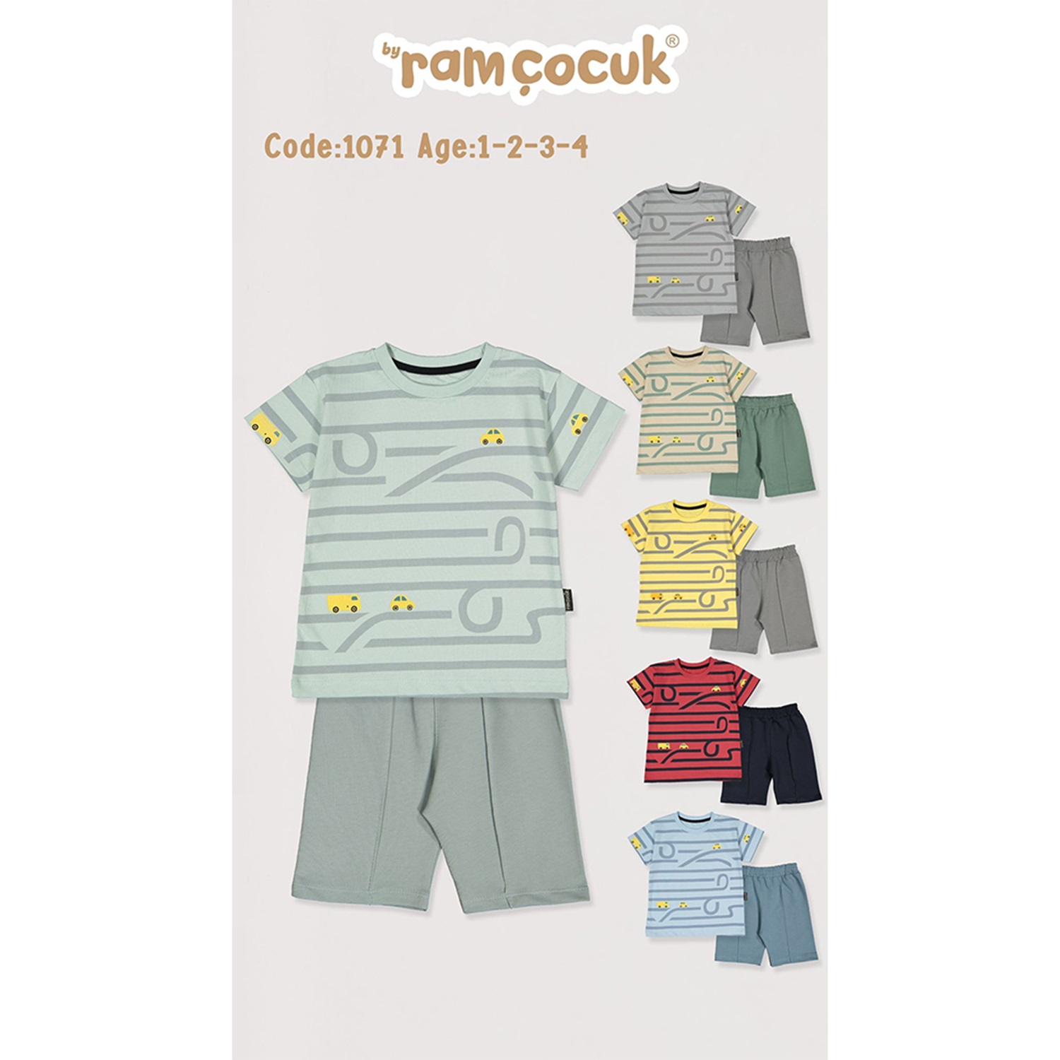 Ram 1071 Erkek Çocuk Penye Çizgili Arabalı Şortlu Takım 1-4 Yaş