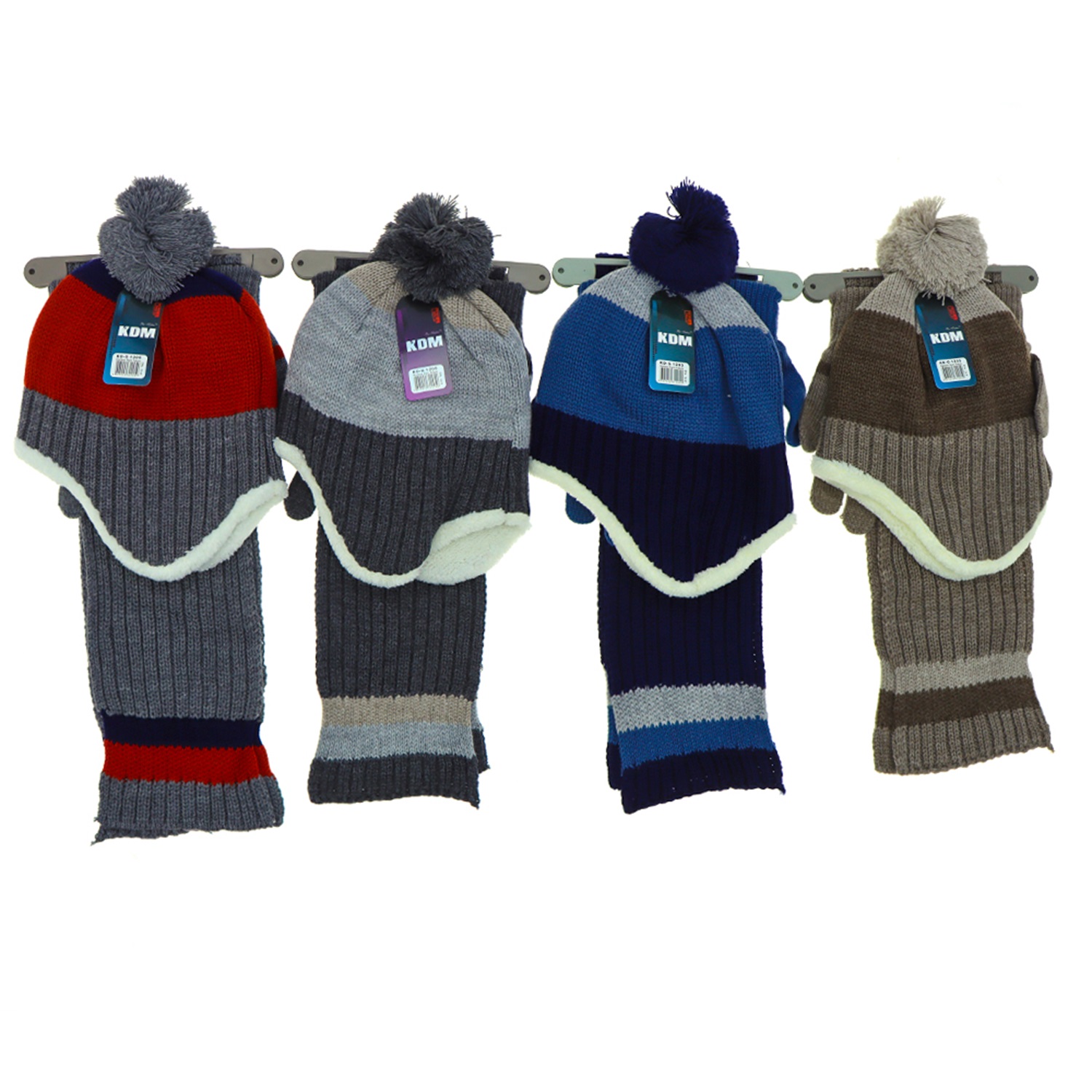Kdm 1205 Erkek Çocuk Desenli Yün Bere 3 Lü Takım 8-12 Yaş