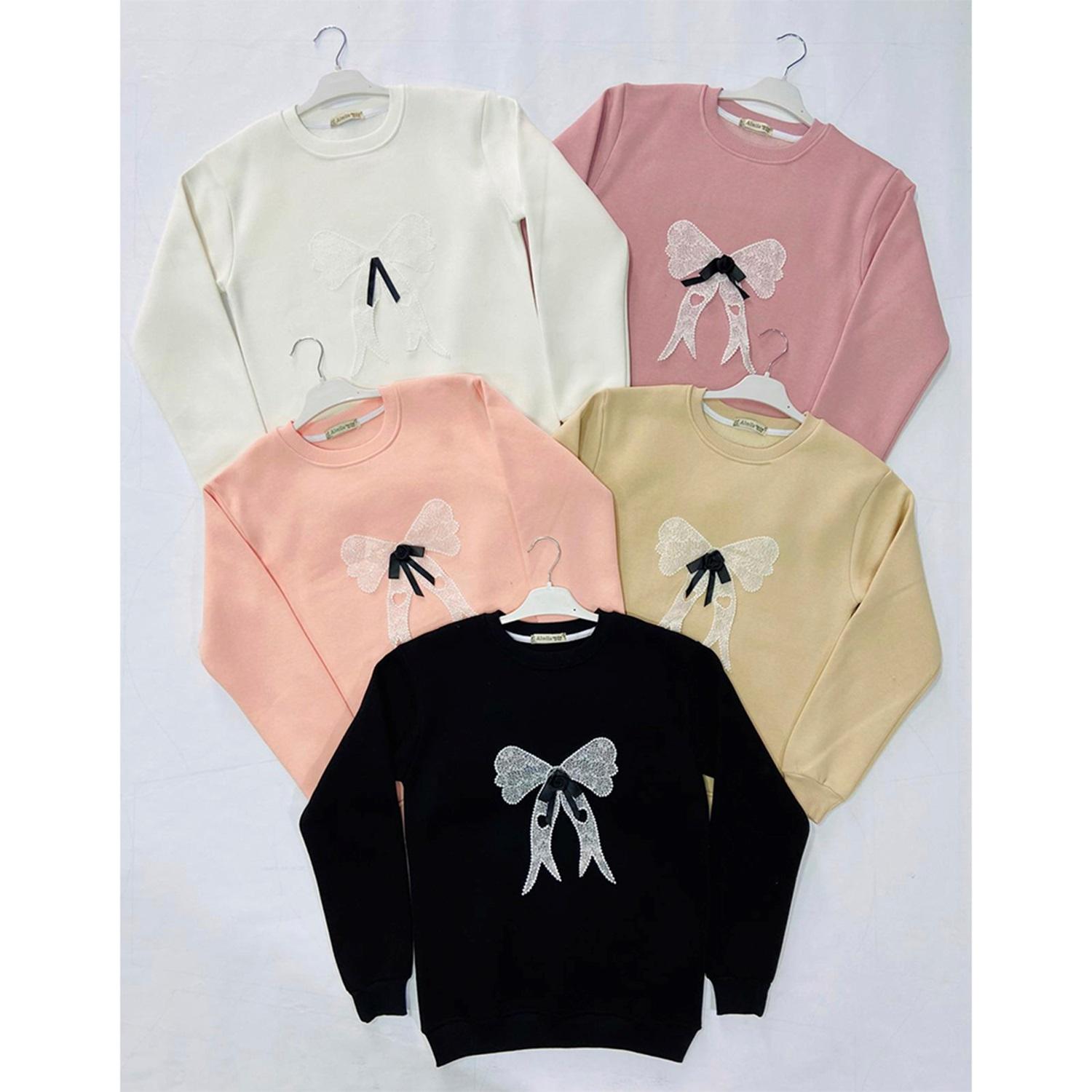 Almila 8316 Kız Çocuk 3 İplik Güpürlü Kurdela Nakışlı Sıfır Yaka Sweat 13-16 Yaş